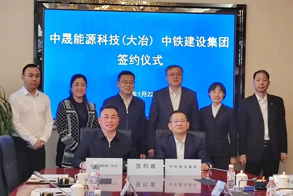 云上大冶报道(记者 但超 通讯员 谈栋良 张珏)22日,中晟能源科技(大冶)有限公司与中铁建设集团有限公司,在北京中铁大厦签订战略合作协议。中铁建设集团有限公司党委副书记王宏斌,大冶市副市长吴飞参加签约仪式。