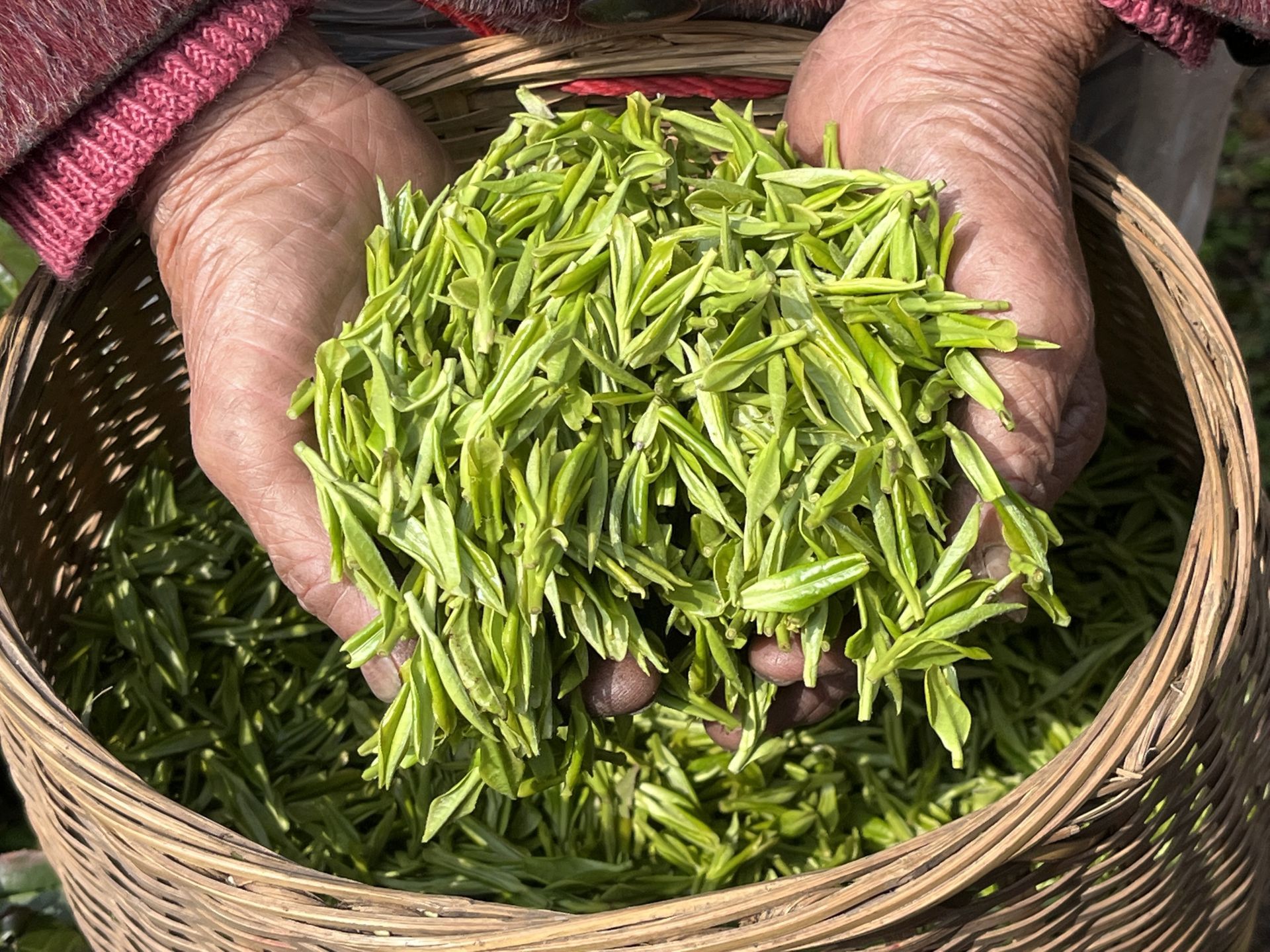 茶农刚采摘的鲜叶