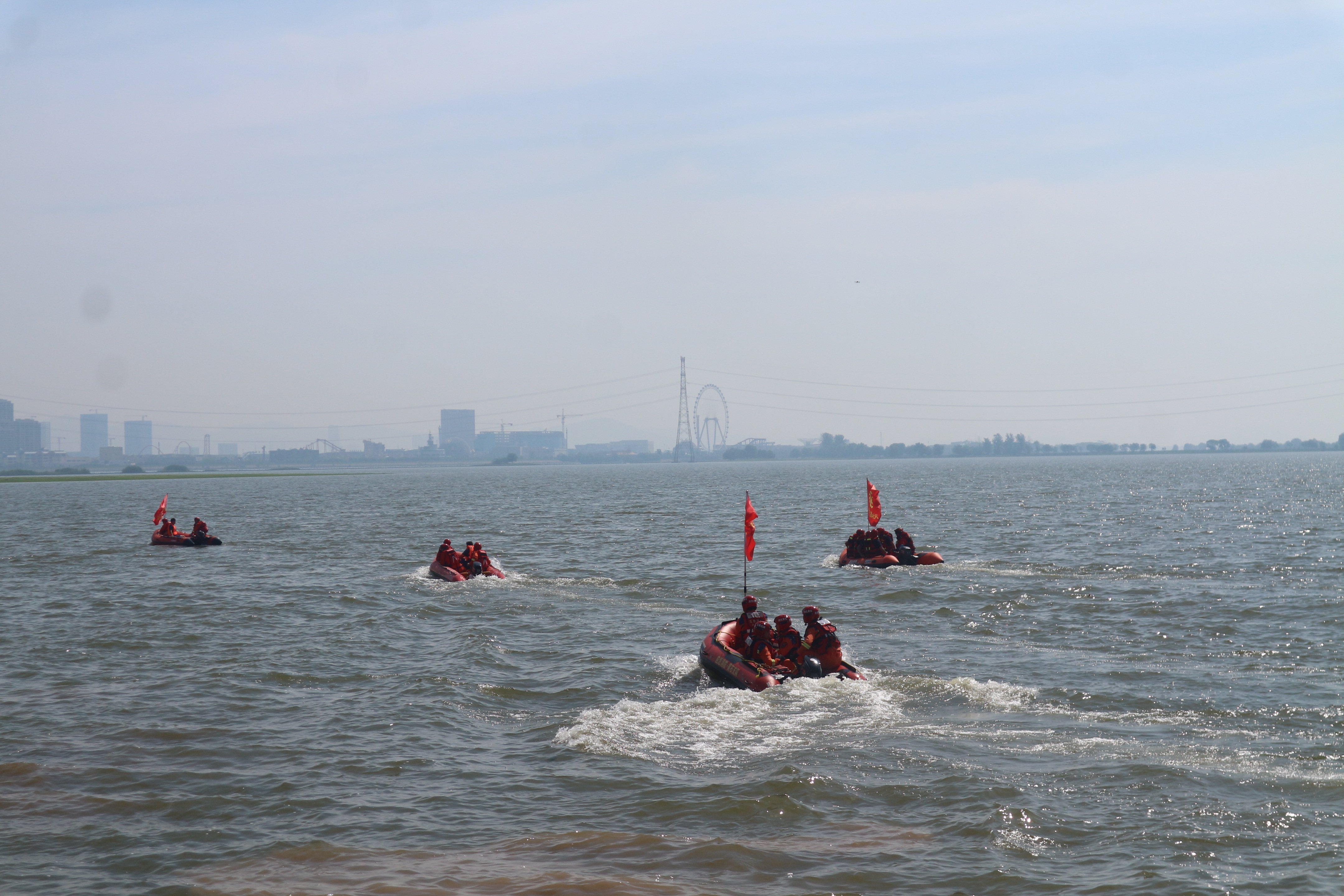 演练现场,多项高科技装备成为亮点。首次投入的水陆两栖车引发大家关注,大冶市蓝天救援服务中心队员刘舫抚摸着车身说:“这家伙能闯沼泽、涉深水,最大的优势就是人、冲锋车到达不了的地方它可以去,不管什么路它都可以走。今天下水演练是第一次使用,感觉还是蛮好的,后续我们也会继续加强摸索,确保能在多种地形和环境中执行救援任务。”大冶市综合应急救援大队副队长吕栋良说:“此次演练中,我们运用了无人机、水下探测器和水上救生艇等智能化设备,通过实时监测水流流向、流速等关键数据,可以为防汛决堤提供科学依据,同时有效提升了应急救援能力。”