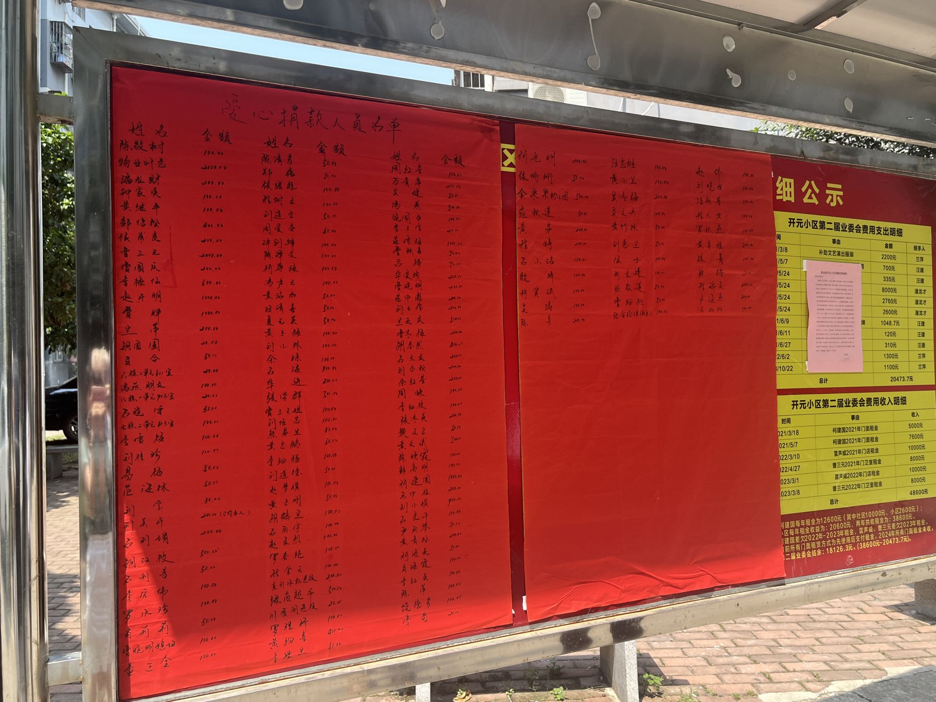 于是大家将想法告诉业委会主任潘龙才,由他在小区微信群发起募捐倡议。消息一出,爱心如潮水般涌动:线下捐款队伍在小区排成长龙,外地居民则通过线上转账参与。从24日发起至27日,捐款名单不断更新,最初的捐款海报因频繁填写新名字而逐渐破损。