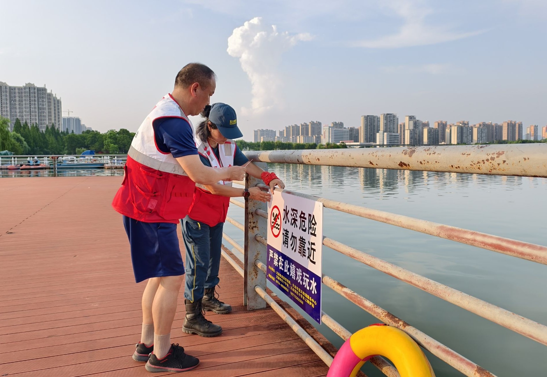 除了硬件保障,志愿服务队更注重源头防范。他们在人流量大的区域增设了醒目的警示牌,悬挂了安全教育横幅。还走进社区开展“防溺水小课堂”,通过互动游戏加强学生防溺水教育。市民柯娜说:“看到救援队不间断地巡逻劝导,听到循环播放的安全提示,既觉得安心又深受教育。”