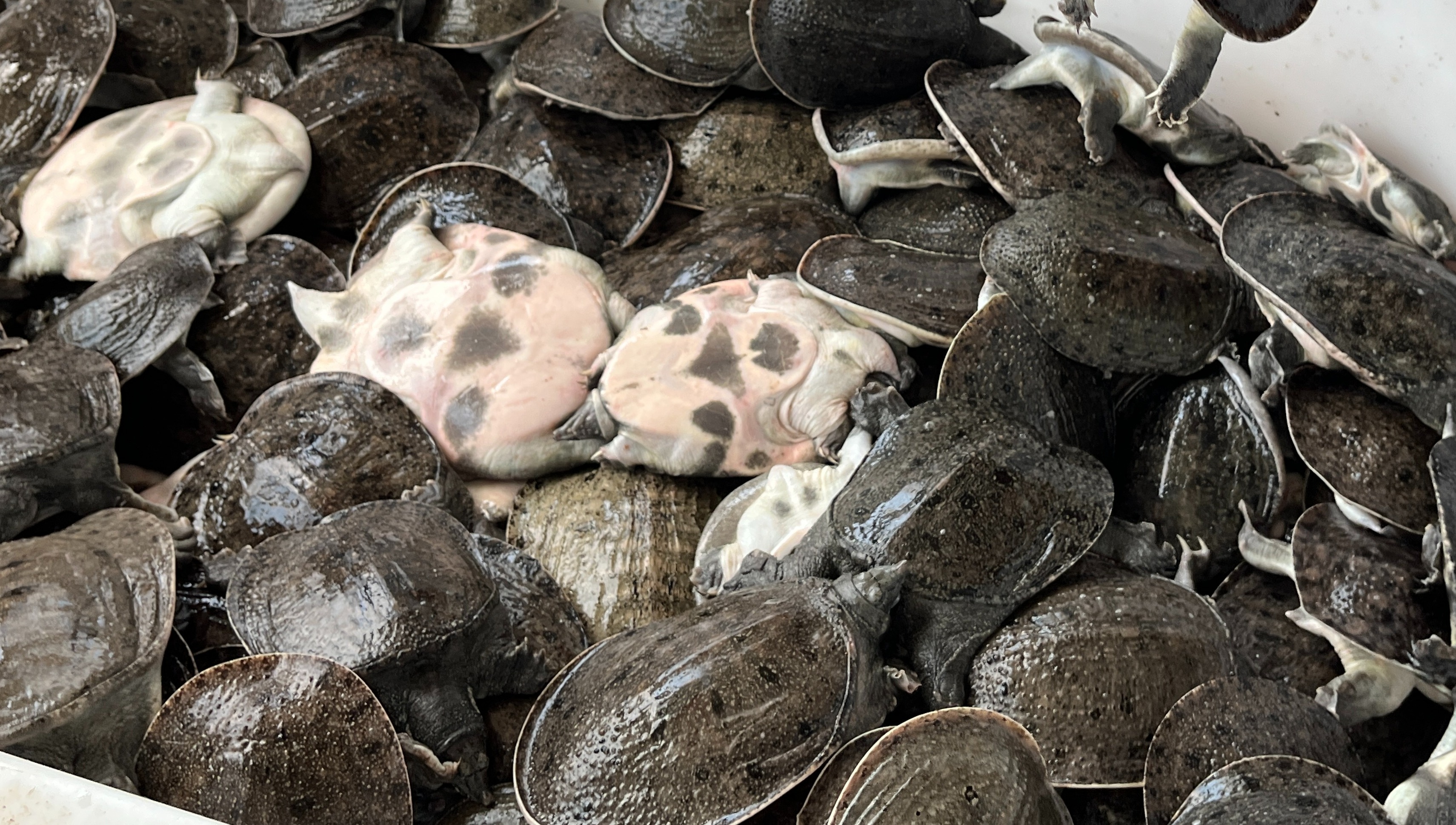 “我们公司主打的是圆边黑花鳖品种,它具有肉质鲜嫩、口感上佳、生长迅速、抗病力强等优点,深受客户青睐。”湖北富渔董事长李名富介绍道。2023年公司投资兴建了占地380亩的甲鱼繁育基地,并建成100口标准化繁育池,年可产甲鱼蛋2400万枚。