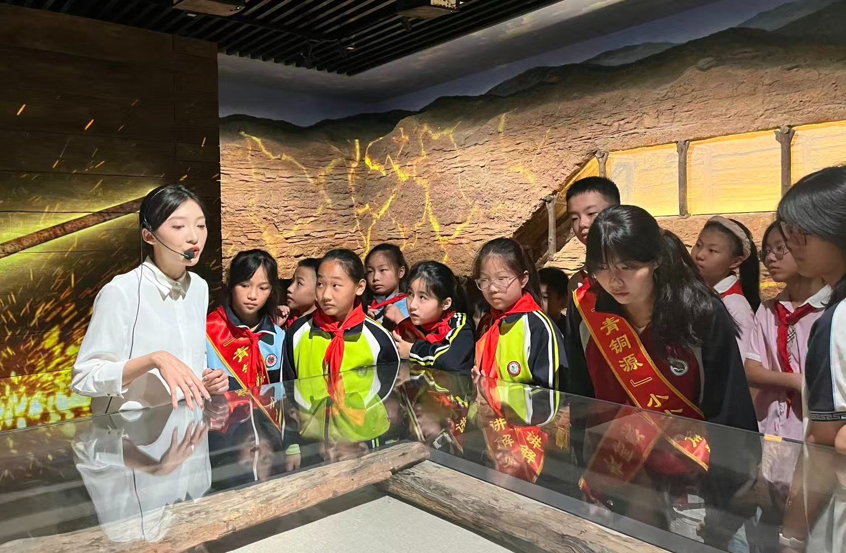 活动中,学生们实地观摩了古代矿井巷道、采矿工具和青铜器物,通过讲解员的专业解说,了解了青铜文化的历史脉络与遗址价值。古老的矿井巷道、斑驳的采矿工具,无声诉说着先民们的智慧与工匠精神。学生们驻足细观,认真聆听,不时发问,眼中闪烁着对历史的好奇与敬意。