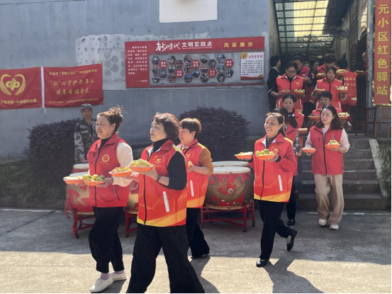 和往年不一样的是,今年后厨队伍里除了志愿队的老面孔,还多了不少主动加入的居民。红色驿站搭起的简易厨房里,大家轮流上阵。兰萍刚在灶台前翻炒着香喷喷的猪脚,转身就登上舞台,和志愿队的伙伴们跳起了排练两个多月的舞蹈。为了这场演出,她们每晚六点到八点坚持排练,就为呈现最精彩的表演。