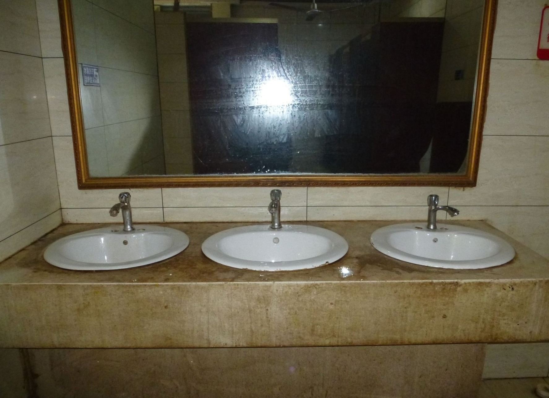 市民石春兰上完厕所后表示:“女厕的洗手池台面沾满了污垢,三个水龙头中有两个损坏了,一个蹲位的隔间门锁也失灵了,希望相关部门能尽快维修并且强化管理,给市民提供一个干净整洁的如厕环境。”