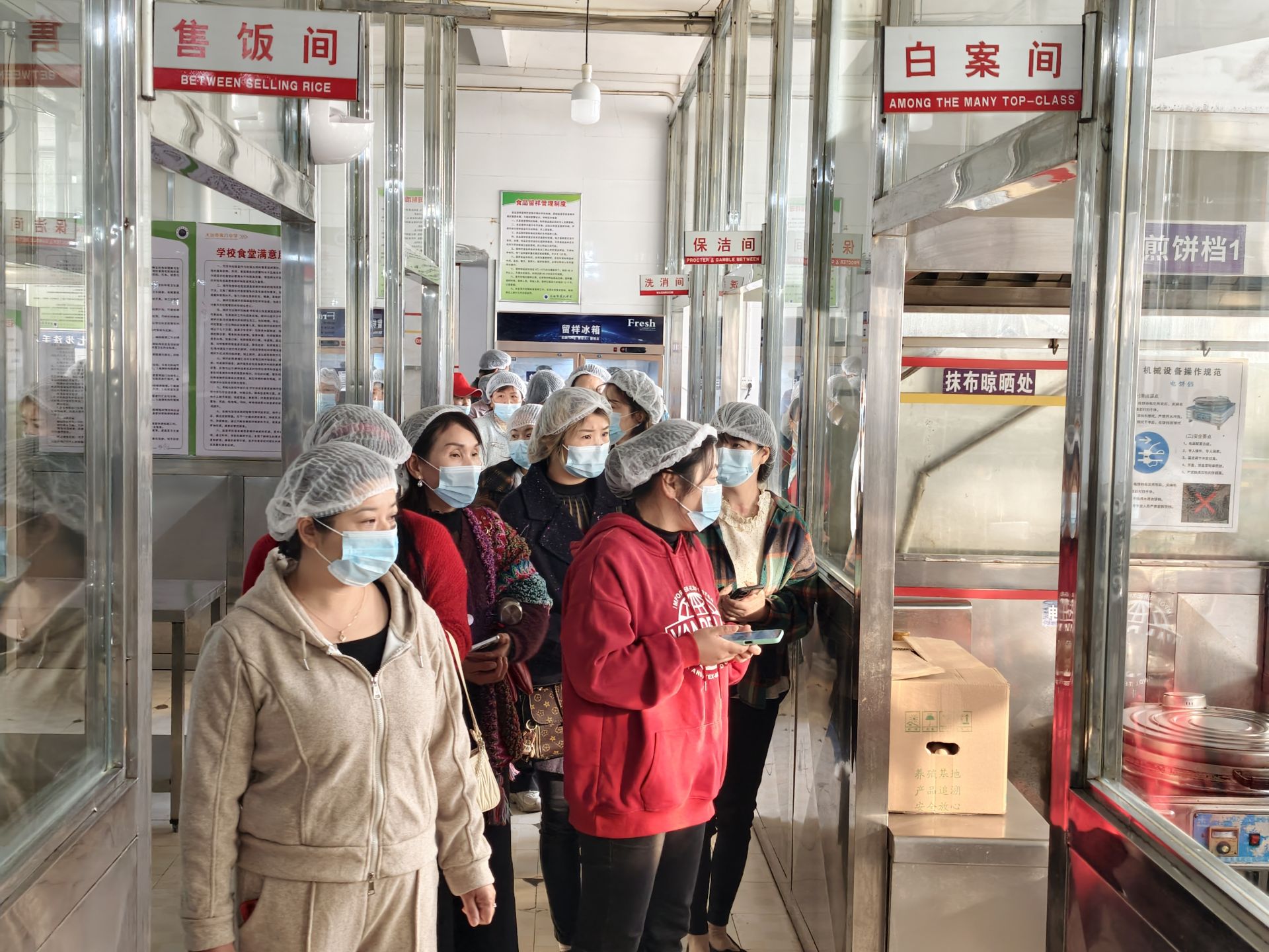 活动中,家长们佩戴好口罩和头罩,一边认真查看食堂采购的各类食材,一边听取学校食管办工作人员的讲解。从食材采购、清洗到加工全流程,家长沿着明厨亮灶一一参观。透明的操作间里,厨师规范的操作赢得家长频频点头。