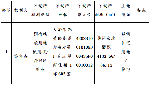 异议书面材料送达地址:大冶市长乐大道大冶市政务服务中心大楼二层市不动产登记中心