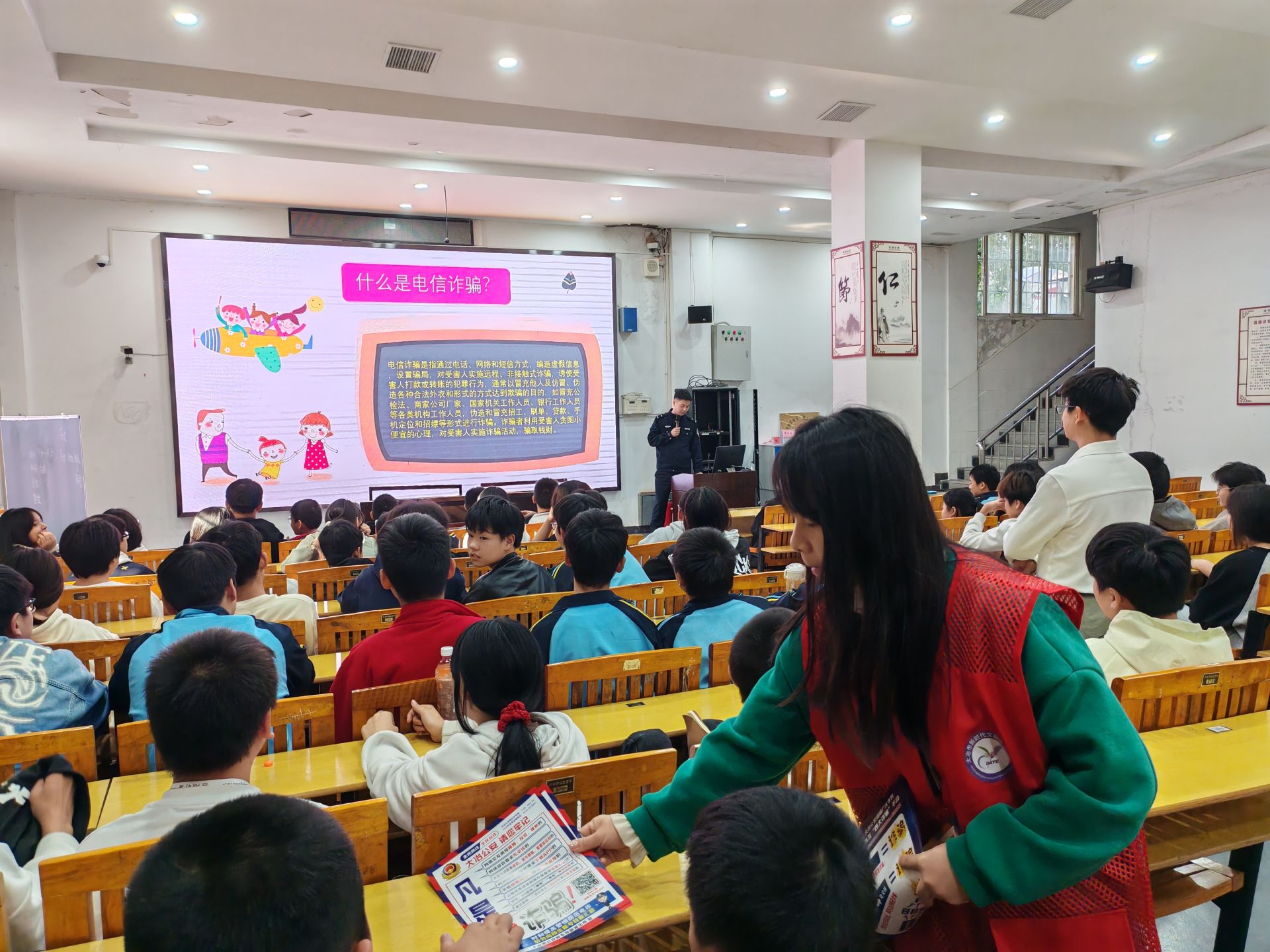活动中,社区民警吴镛以抵制青少年不良行为为重点,围绕防欺凌霸凌、防电信网络诈骗、预防未成年人犯罪等内容进行宣讲。同时,吴镛通过以案释法的方式深入浅出地为校园师生们讲解了《中华人民共和国预防未成年人犯罪法》《中华人民共和国治安管理处罚法》中相关知识内容,引导学生们从小树立法治意识,学会用法律保护自己,不断增强法纪观念和自我保护能力。