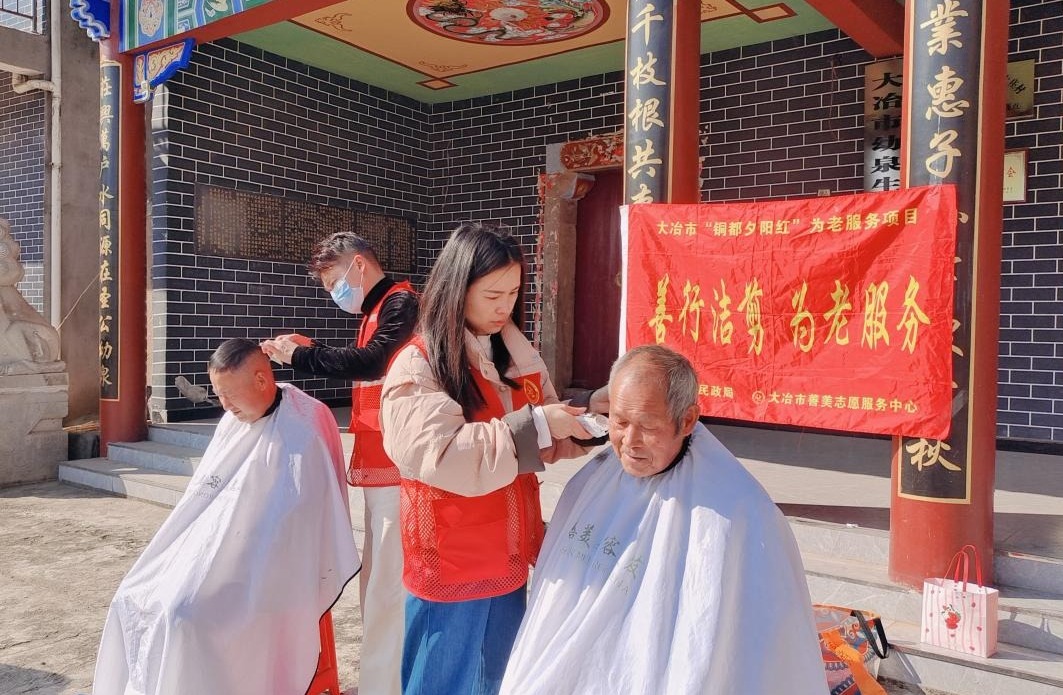 云上大冶报道(记者 柏蔷薇 通讯员 焦国保)近日,在市民政局“铜都夕阳红”为老服务项目的精准对接下,善美志愿服务中心“善行洁剪”志愿服务队走进灵乡镇大庄村,开展“爱心义剪”志愿服务活动,为该村老年人提供贴心的公益理发服务。