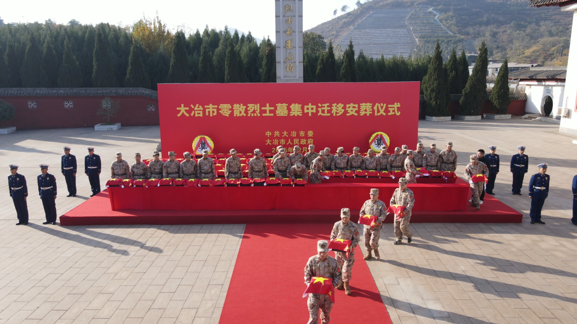 云上大冶报道(记者 张蕾)12月3日上午,我市在金湖街道大冶革命烈士陵园纪念碑广场举行零散烈士墓集中迁葬仪式,将原先分散安葬的132名革命烈士遗骸集中迁葬至烈士陵园,以庄严仪式告慰英灵,传承红色精神。市委常委、市人武部政委徐浩,副市长徐铭参加仪式。