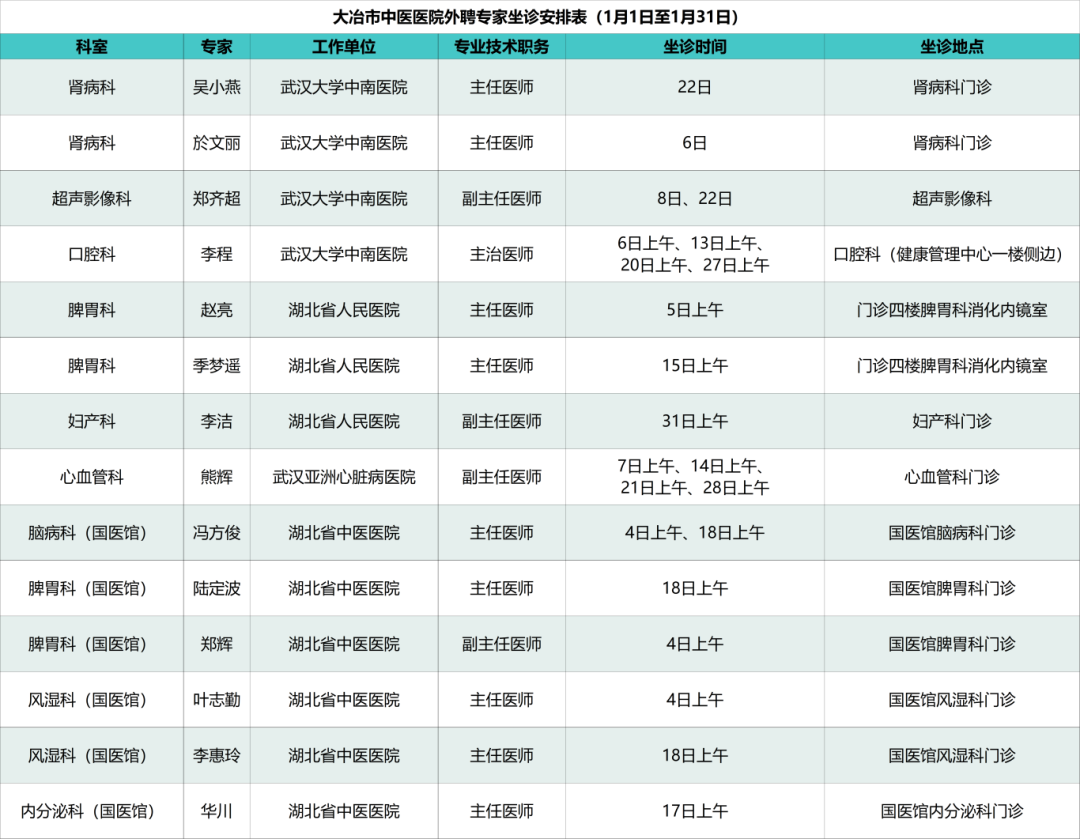 地点:湖北省大冶市建设路6号大冶市中医医院门诊部