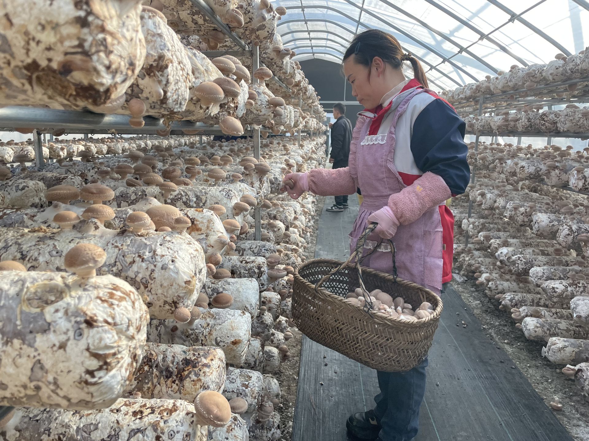 公司红火发展的背后,最受益的莫过于周边乡亲。村民陈百桂从2025年8月来到基地务工,如今每月能有3000元的稳定收入。“这里上班挺好的,比出去打工强多了。”她一边分拣香菇,一边笑着说。和她一样的还有村民朱芳萍,从菌棒制作到香菇采收,全程参与基地生产,每个月收入2000元。