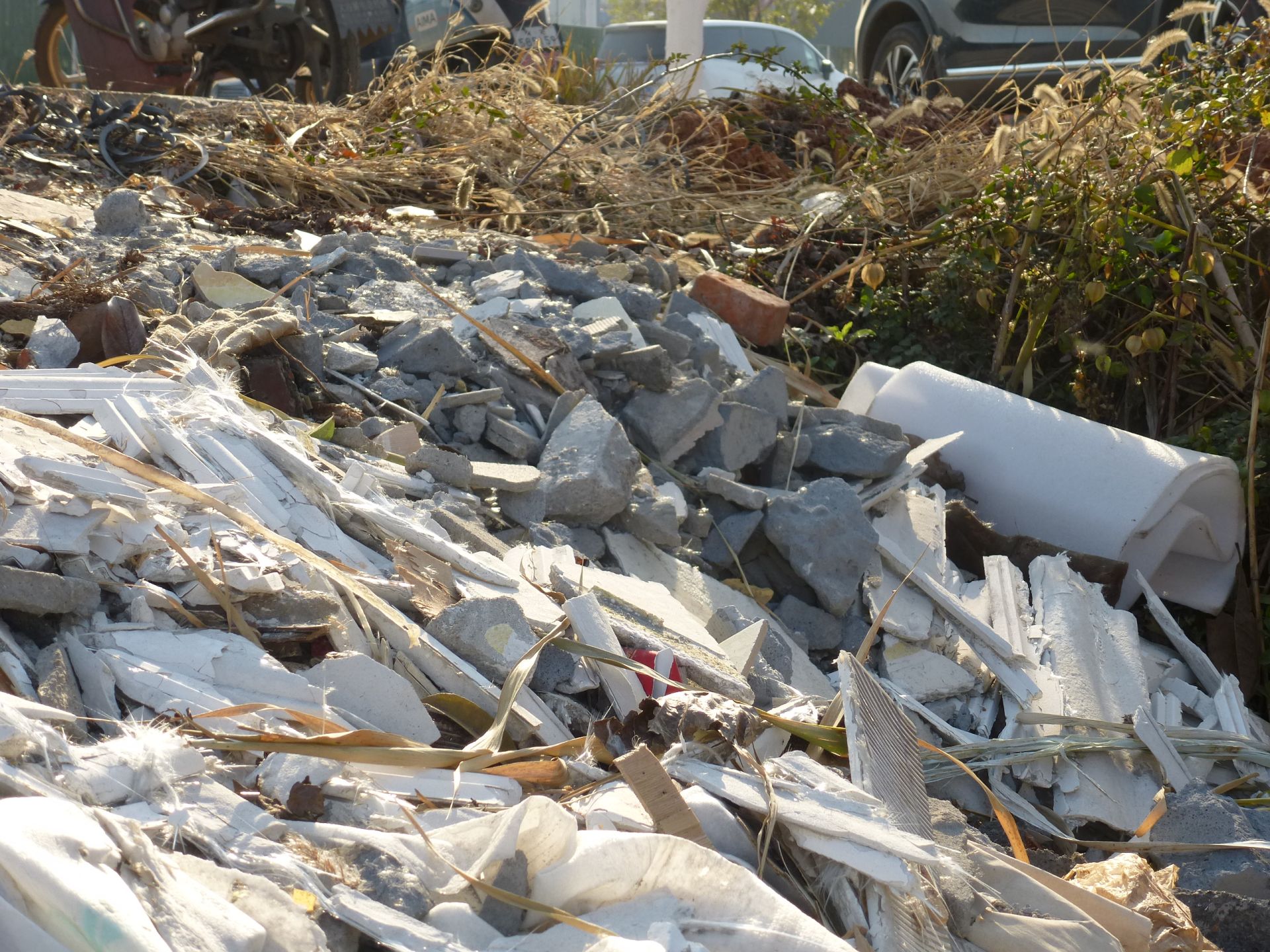 14日下午,记者在315省道大箕铺镇三角桥村路段看到,道路两侧堆放着多处破旧的石棉瓦、砖块等建筑垃圾;在位于铜源大道的罗家桥街道上港庄陈家嘴门楼附近,建筑垃圾与工程垃圾已堆成一座垃圾山,环境状况令人忧心。“去年7月路过就看到有人偷倒,半年多了,不仅没人清,还越积越多。”附近居民陈师傅无奈道,“有时村民看到有人偷倒垃圾想阻拦,但货车司机根本不理,我们又没执法权,还是得靠城管部门来管。”