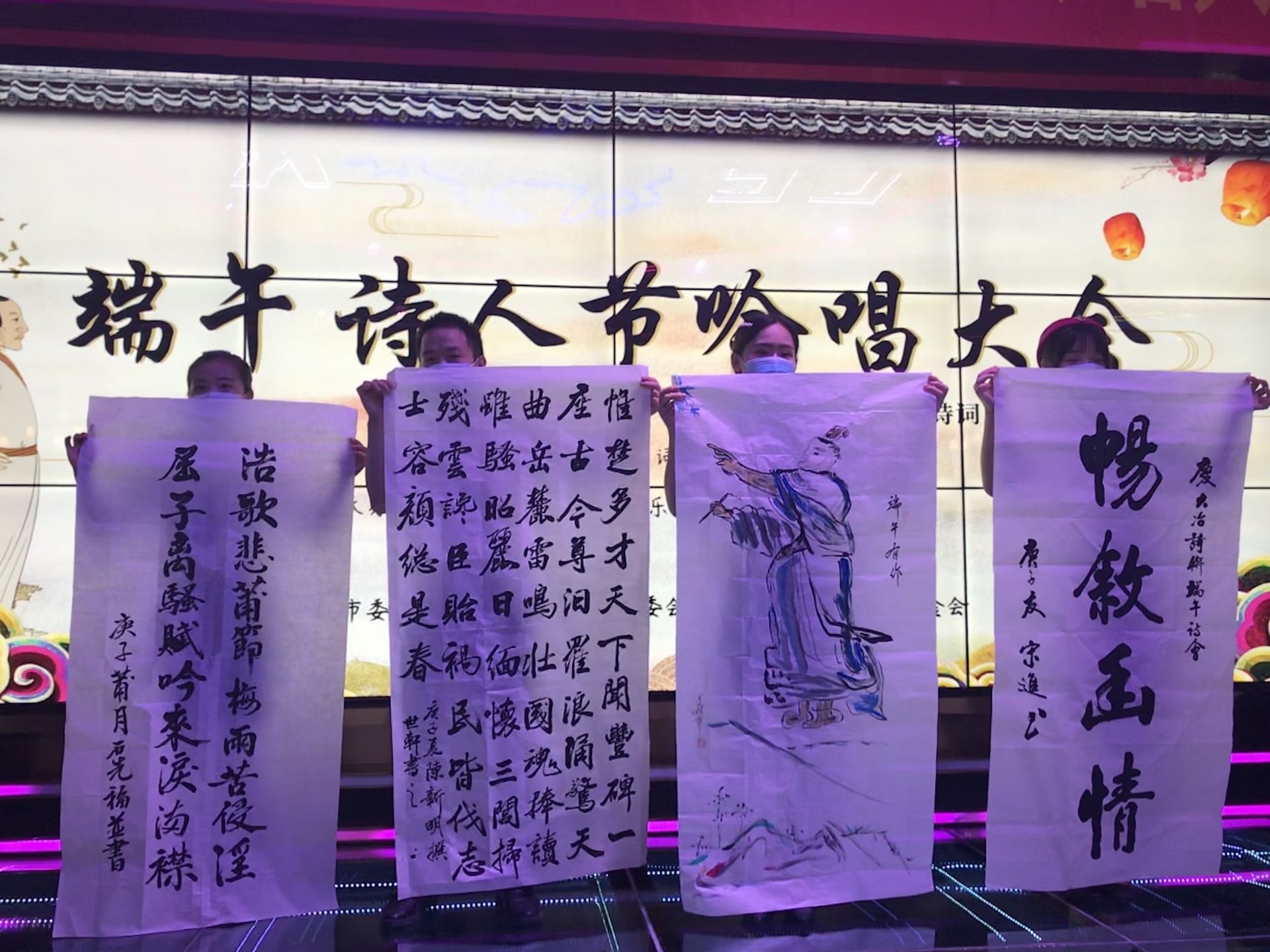 当天,书画爱好者们也不甘示弱,纷纷执笔挥墨,或行云流水,或刚毅遒劲,现场创作作品达30多幅,内容主要表达对爱国诗人屈原的深切怀念,展现中国传统文化丰富内涵,表达对美好生活的衷心祝愿。