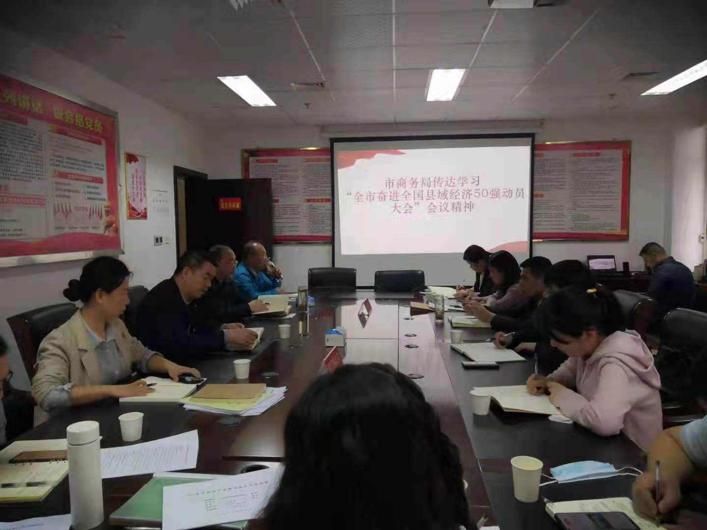 5月18日下午,商务局党组书记、局长卢晓东主持召开奋进全国县域经济50强商务系统动员大会,传达学习全市奋进全国县域经济50强动员大会精神,商务局机关全体人员、二级单位班子以上成员参加会议。