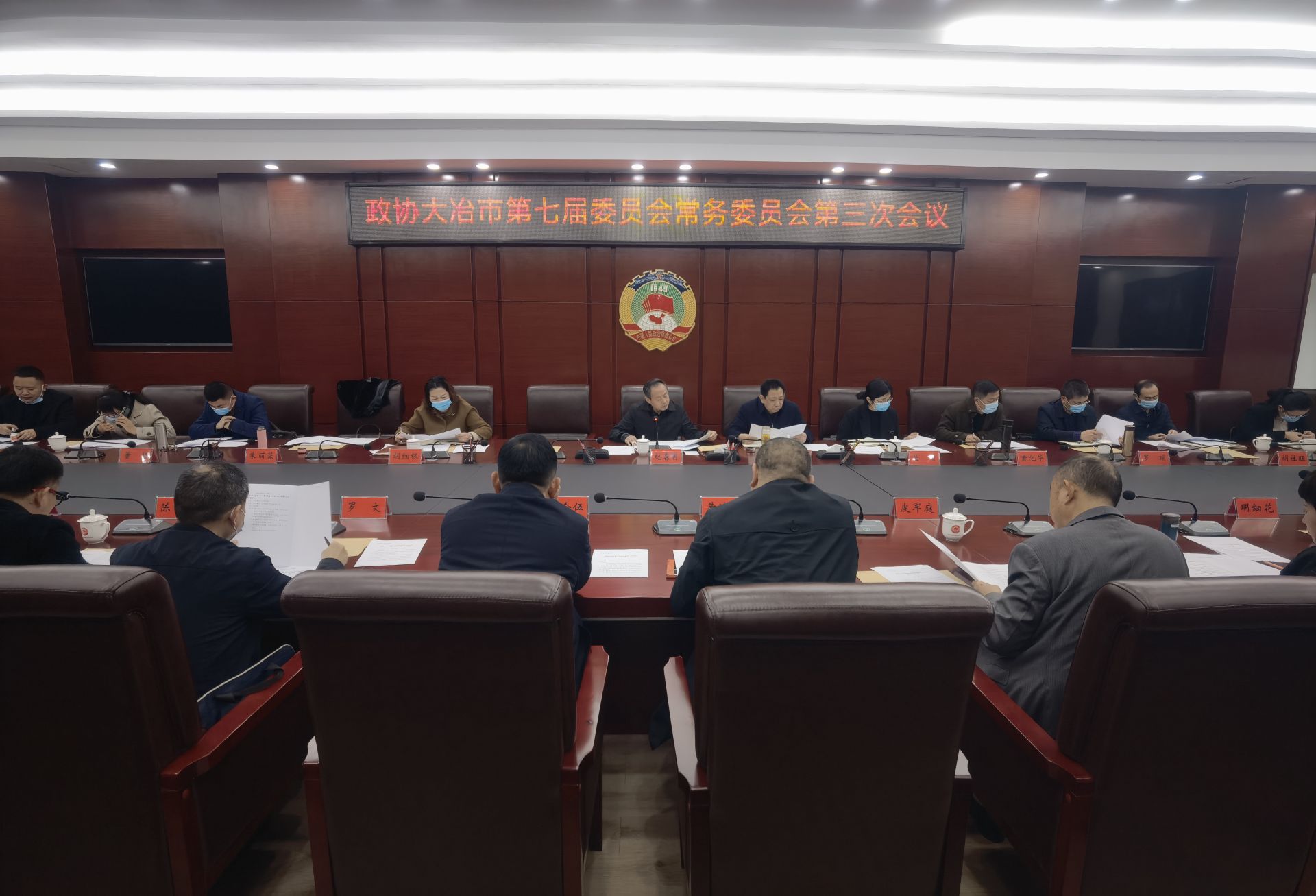 云上大冶报道(记者 张伟)2月28日,市政协党组书记、主席纪春明主持召开政协大冶市第七届委员会常务委员会第三次会议。市政协副主席冯海潮、熊志红、马倩,秘书长胡细银出席会议。