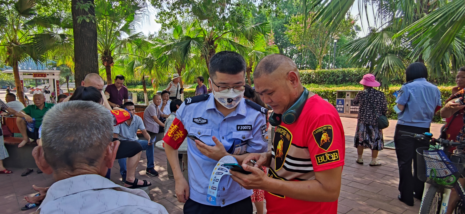 6月15日,刑侦大队民辅警志愿者走进风华路社区开展打击整治养老诈骗犯罪专题宣讲会。宣讲过程中,志愿者通过发放宣传资料、扇子等,现场讲解答疑的方式,以真实案例向老年人介绍电信网络诈骗常见犯罪手法,养老诈骗中惯用伎俩、类型特点,提醒大爷大妈们注意保护个人隐私,警惕各种推销活动,同时还帮助老人下载“国家反诈中心”APP,用信息化手段提升老年群体的反诈意识。