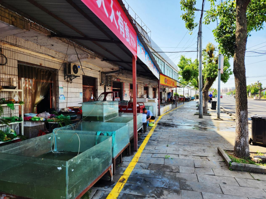 温刚介绍,按照3米至3.5米的标准,东风农场城建办已为全农场近40家店铺施划了“文明黄线”,允许商户按序出店经营,“成效非常明显,商户们反响热烈。”温刚表示,当下为鱼虾销售旺季,而作为鱼虾养殖重镇,对于东风农场沿街商户来说,经营活动非常频繁,出店经营的情况也时有发生。“文明黄线”施划之后,在柔性执法下,商户经营空间得到一定拓展,在常态化劝导、巡查的加持下,街道更有序、经营更文明。