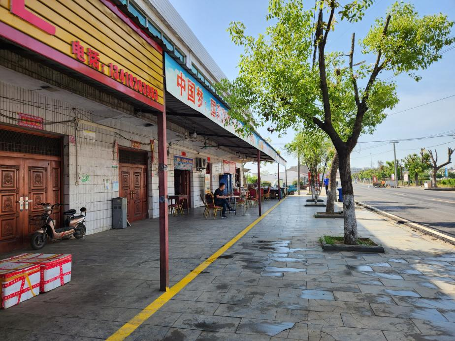 在该镇新街两旁的商户门口,同样有一条黄线延伸开来。商户们不约而同地在黄线内摆放商品,整条街道没有一户有越线经营的行为。