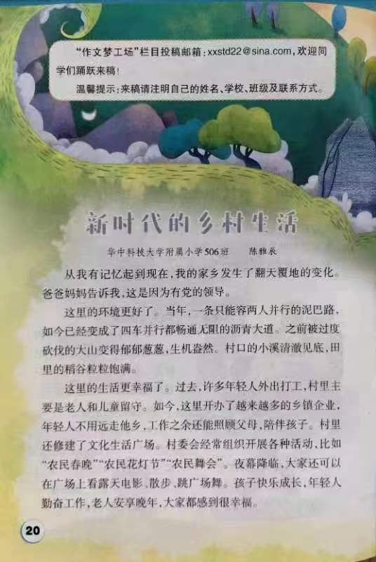 云上大冶报道(记者 但超)近期,一篇描写家乡大冶市陈贵镇变化的小学生作文,在全国知名少儿期刊《小学生天地》2023年3期刊登。