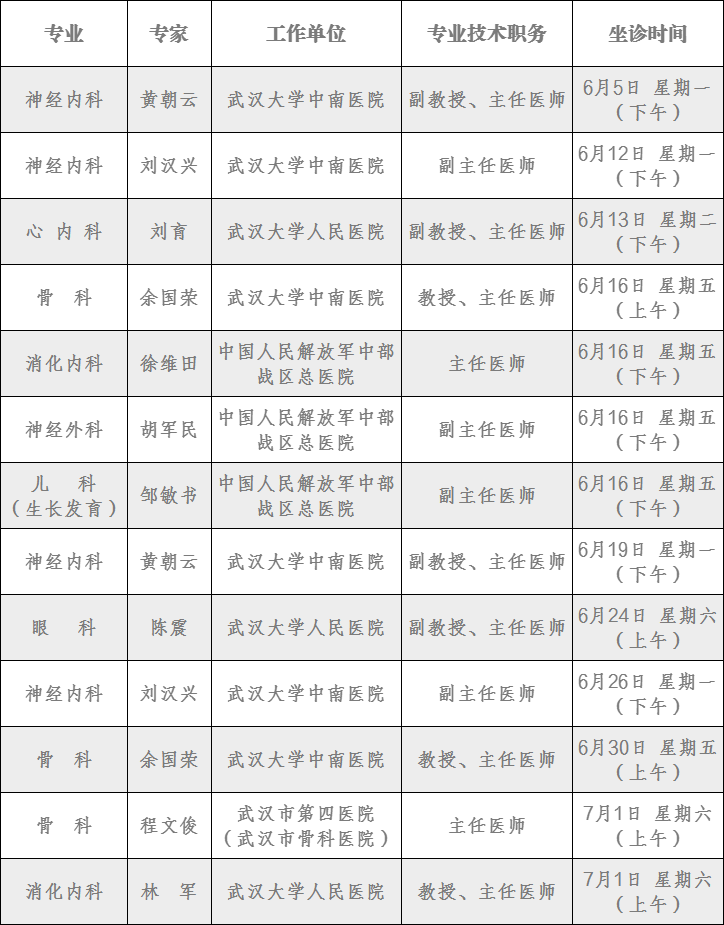 武汉名医堂专家坐诊安排表(2023年6月1日-7月1日)大冶市人民医院 2023-05-25 15:44 发表于湖北