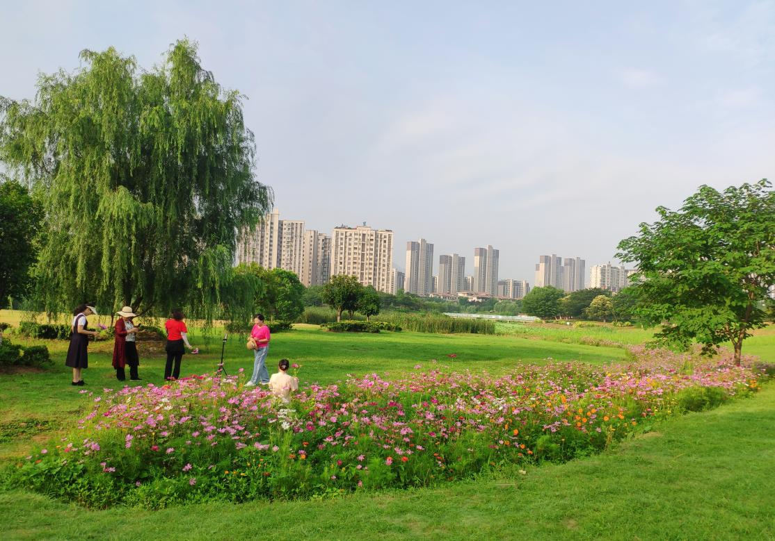 云上大冶报道(记者 李尚书)在碧桂园湿地公园,有一处圆弧形的花海,近日开满了各种颜色的花朵,宛如绿洲上面镶嵌了一弯五彩的月牙,非常漂亮,每天吸引不少市民前来赏花、拍照。