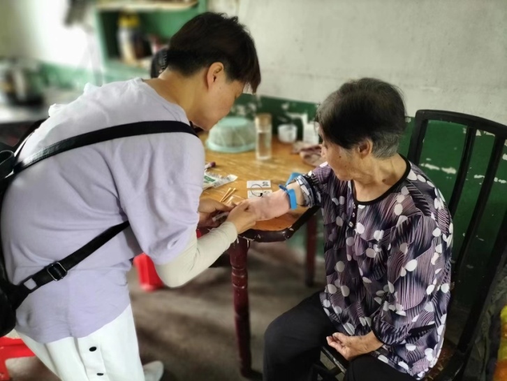 电厂小区现有住户91户,居民235人,其中60岁以上老人188人,占总人口的80%。家住小区2栋的陈焱祥老人,今年82岁,因腿脚不便不能来体检,社区工作人员得知情况后将他扶上轮椅一路护送到体检现场。对因年事已高不能出门的老人,医务人员和志愿者主动上门服务。