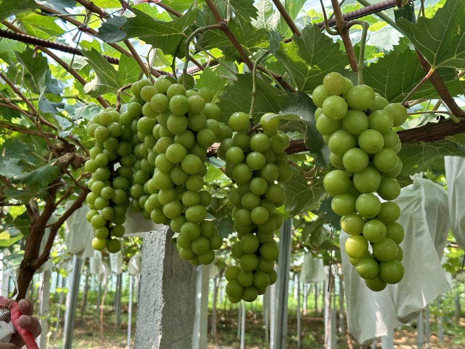 7月24日,走进平原村四季果园,翠冠梨、香瓜、葡萄、火龙果、黄桃等各类新鲜水果掩映在翠绿的枝叶间,浓郁的果香随着微风扑鼻而来,游客们根据自己的喜好采摘、品尝着新鲜水果。