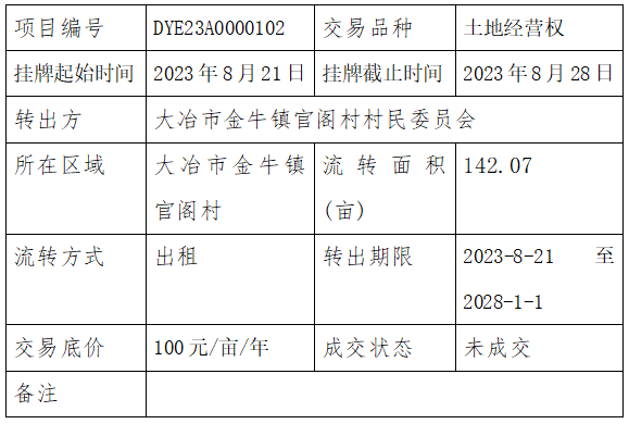 大冶市金牛镇官阁村6组土地承包经营权 承租公告