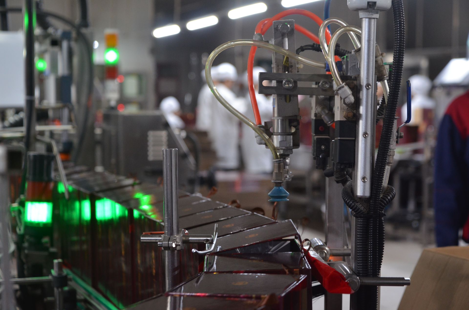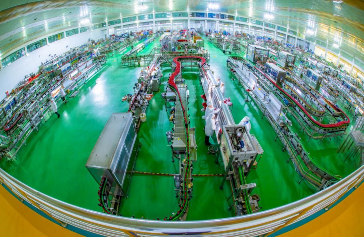 在劲牌酒厂包装车间,放眼所见的是自动化生产线,一瓶瓶中国劲酒在线上流动,从灌装入瓶到包装入箱,一眼可以看到全流程。