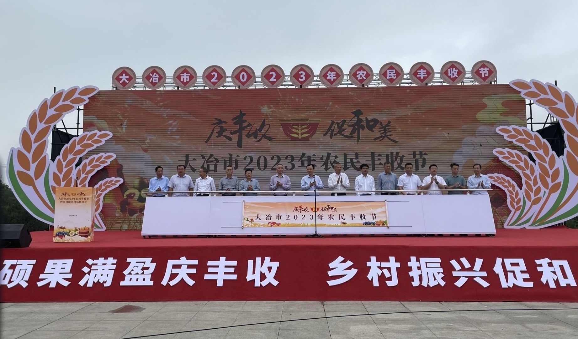 欧阳书文在讲话中指出,今年是全面贯彻党的二十大精神的开局之年,也是加快建设农业强国的起步之年,办好农民丰收节意义重大。近年来,大冶市坚持农业农村优先发展,坚持城乡融合发展,唱响了质量兴农、绿色兴农、品牌强农的主旋律,实现了农村一二三产业深度融合发展,农业农村现代化加速推进,并先后获评全国休闲农业重点县、国家农业绿色发展先行区等多项殊荣,成功入选国家乡村振兴示范县创建名单。希望大冶市在当好黄石打造武汉都市圈重要增长极主力军、加快建成重要节点城市、奋进全国县域经济五十强的道路上阔步前行,收获“农业强、农村美、农民富”的新“丰”景。