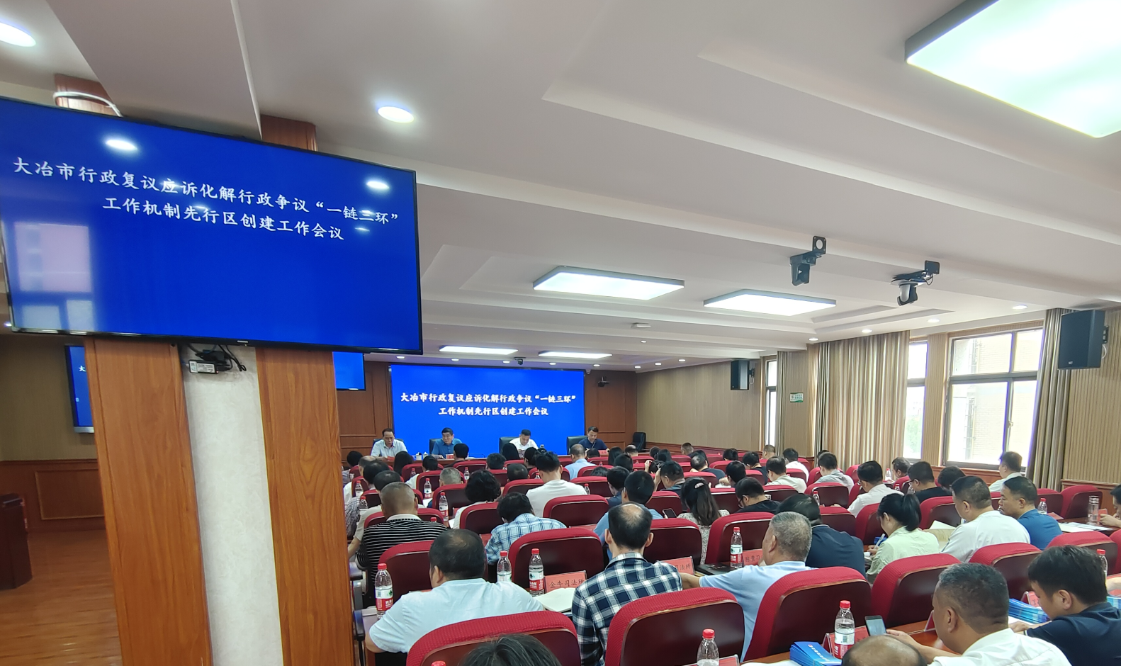 会上下发了《大冶市行政复议应诉化解行政争议“一链三环”工作机制先行区创建实施方案》,陈贵镇、金湖街道就先行区创建作表态发言。