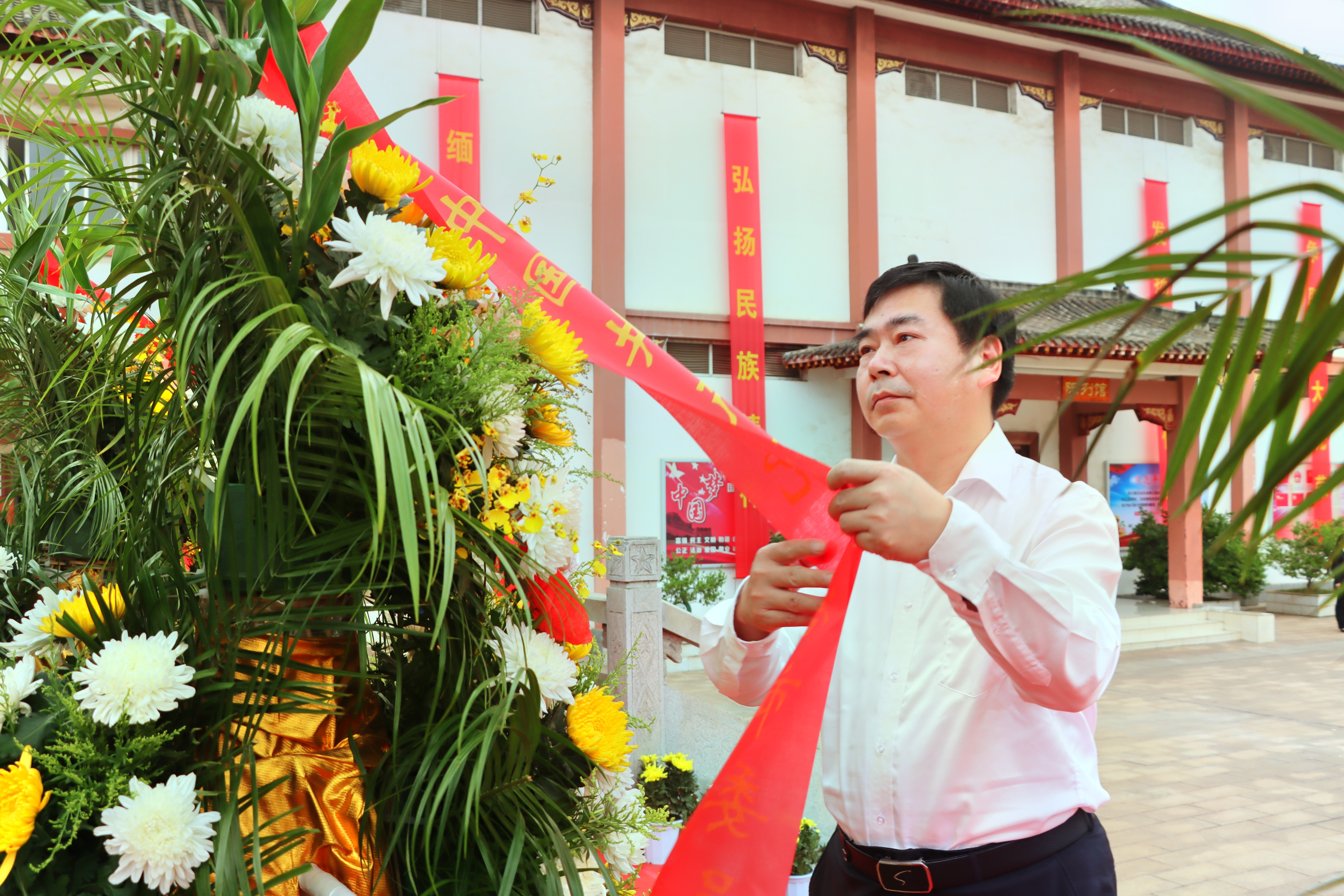 紧接着,郝胜勇神情肃穆,缓步来到烈士纪念碑前,仔细整理花篮的缎带。