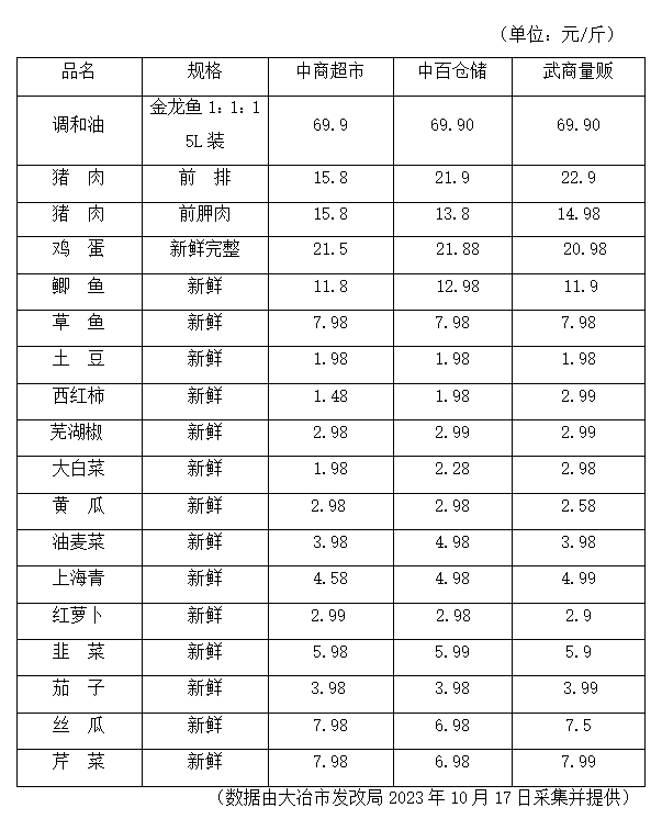 大冶市发改局价比三家监测表
