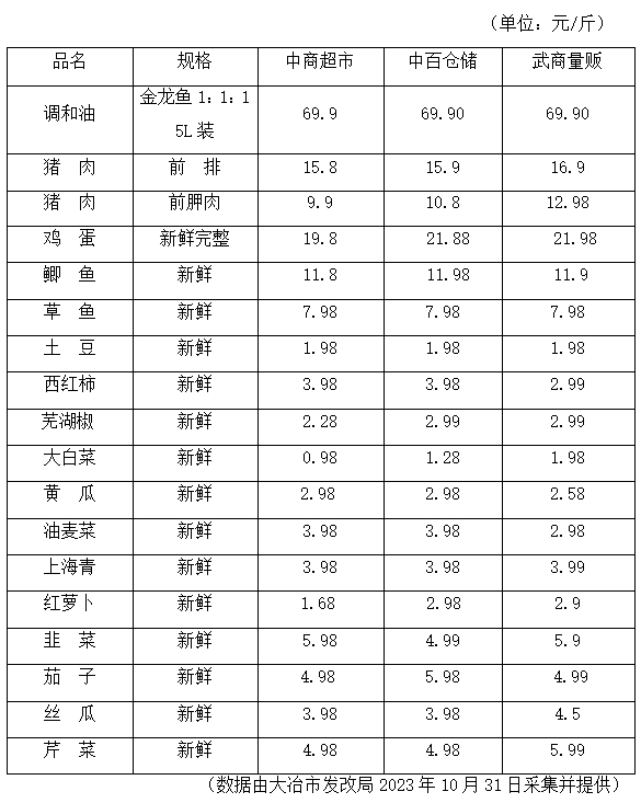 大冶市发改局价比三家监测表