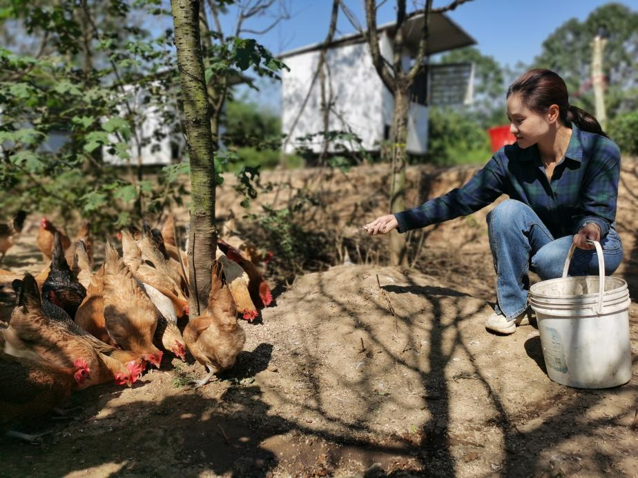 吴静喂食“跑山鸡”
