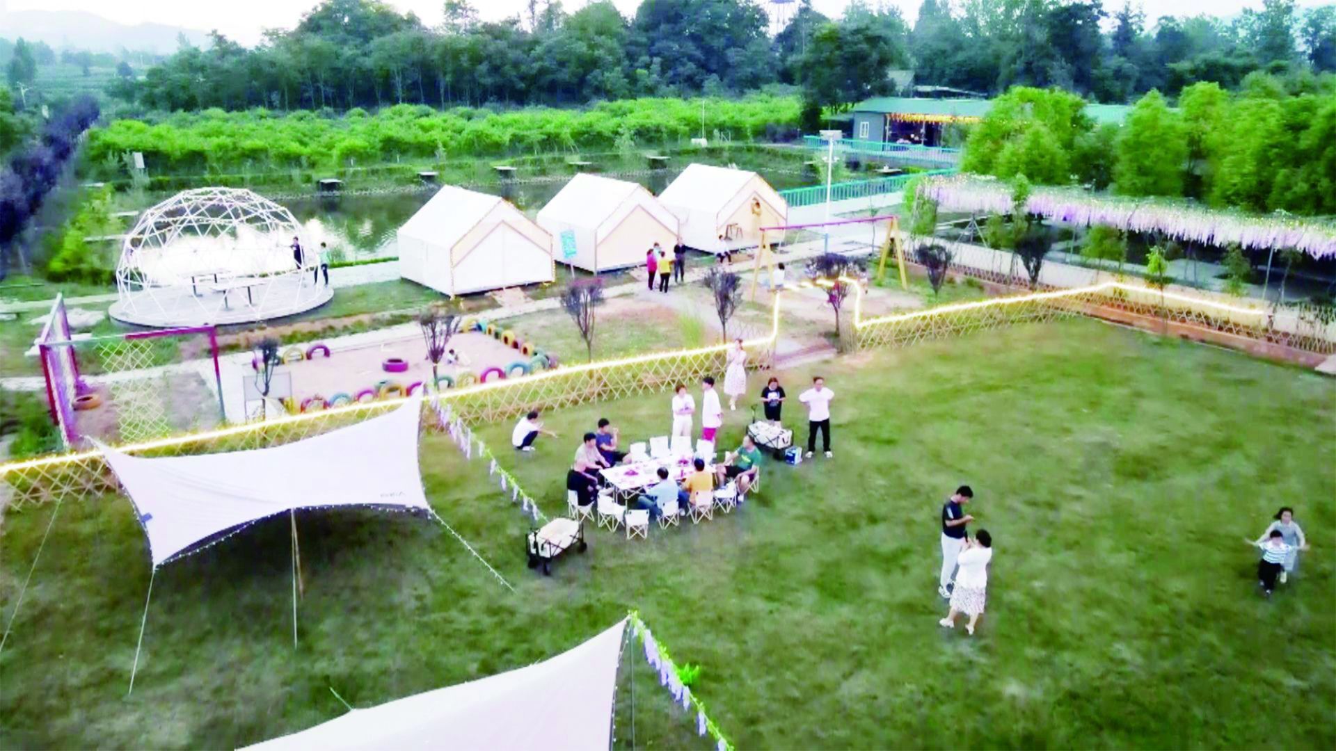 枕草地,望星空,吃烧烤……龙凤山、三山湖、曹家晚石门坎、金桥生态园等露营基地深受年轻游客追捧,一顶顶白色帐篷点缀在花草间,与远山近水构成一幅和谐优美的自然画卷,游客们边吃烧烤边叙友谊,惬意地享受着乡村露营带来的乐趣和夏日的美好夜晚。