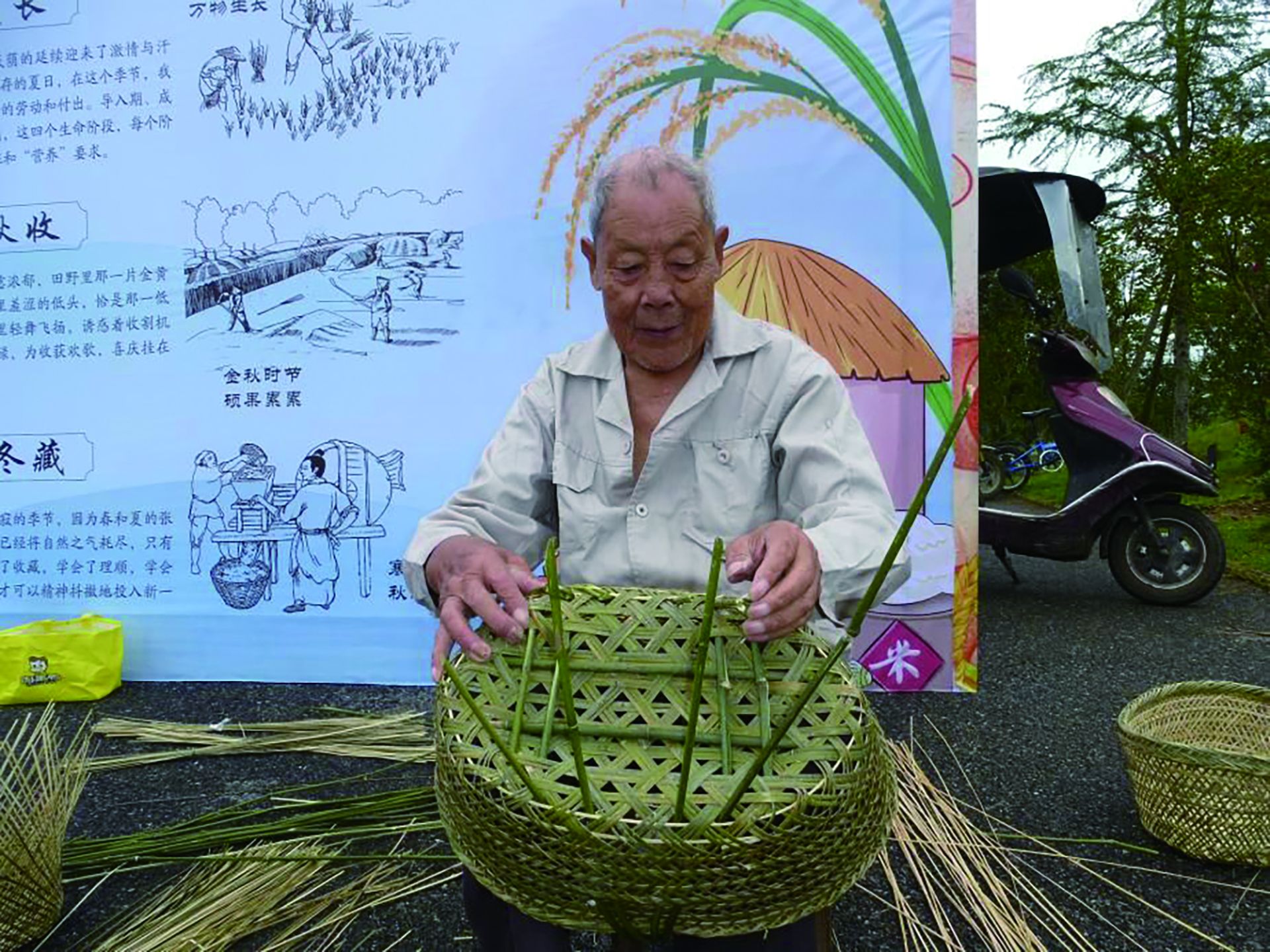 现场除了摆满了向市民和游客展示的农耕机具外,来自金牛镇贺桥村周福益湾的两位竹篾匠现场编织水竹篮的绝活儿最引人关注,市民和游客或驻足欣赏他们竹编手艺,或为他们拍照和合影,发朋友圈。