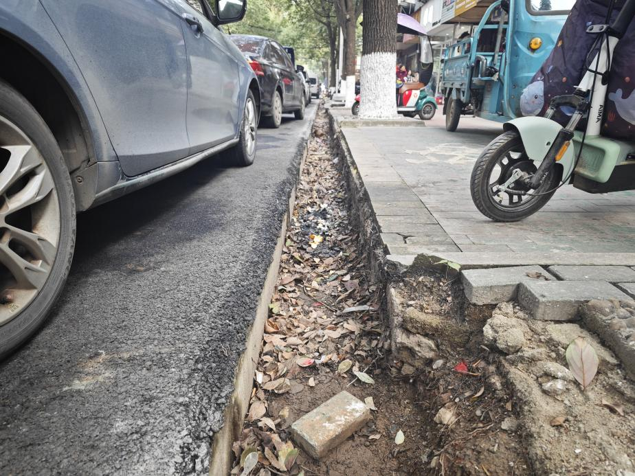 “今年8月份开始修的,路是修好了,但是这个沟一直都没有复原,不仅影响市容市貌,对我们生意也有影响。”新鑫文体生活馆店主柯女士说,这么长一条横沟,车子进出不方便,上下货很麻烦,老人小孩进出也危险。