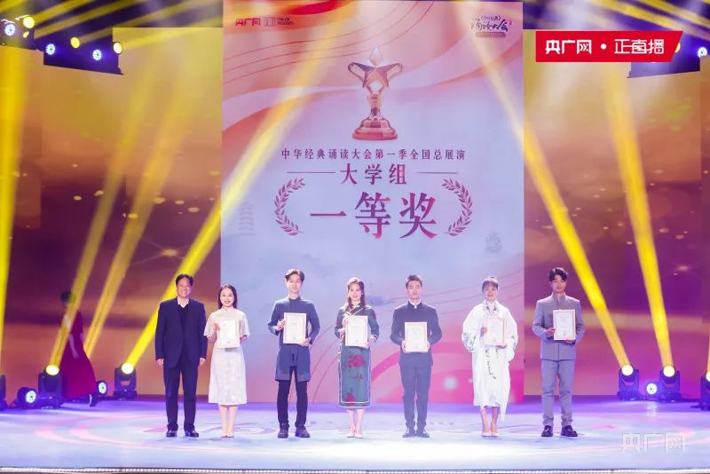 大学组一等奖靳天翼现场朗诵了《唐诗里的中国》,“一壶酒,一把剑,一轮残月。一路狂舞,一路豪饮。舞出一颗盛唐的剑胆,饮出一位诗坛的谪仙……喜笑悲歌气傲然,九万里风鹏正举。沧海一声笑,散发弄扁舟。” 婉转悠扬、情感真挚,引得现场观众连连喝彩,线上观看直播的网友连连点赞。
