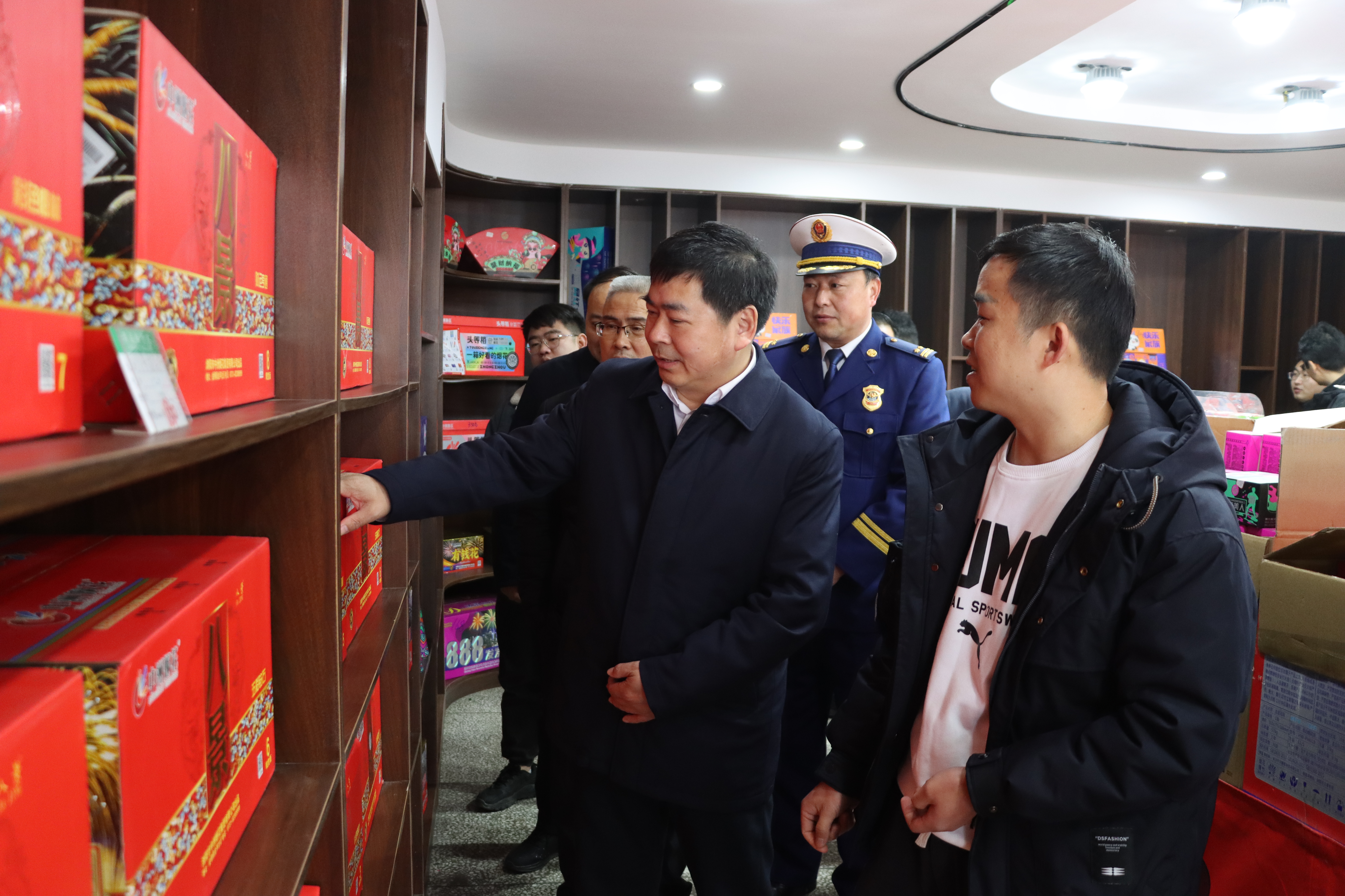 在金湖街道马晓宇烟花爆竹店,郝胜勇详细询问经营户备货量、经营销售、储存场所安全等情况。他要求,要从正规渠道进货,严格按照安全要求规范经营和存放易燃易爆物品,切实做好防火安全工作。