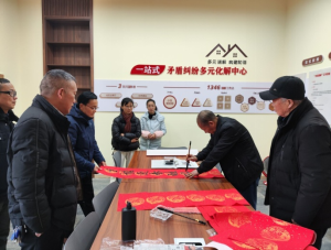 小区舞蹈队进行舞蹈表演,庆祝红色驿站揭牌启用。她们用手中舞蹈扇依次摆出了“开门红,庆祝红色驿站开业,2024大吉大利”等字形,用精湛的舞蹈技艺吸引群众驻足观看。驿站内,有的居民围在一起在写春联、有的居民在下象棋、小朋友在玩玩具等,好一派热闹的景象。