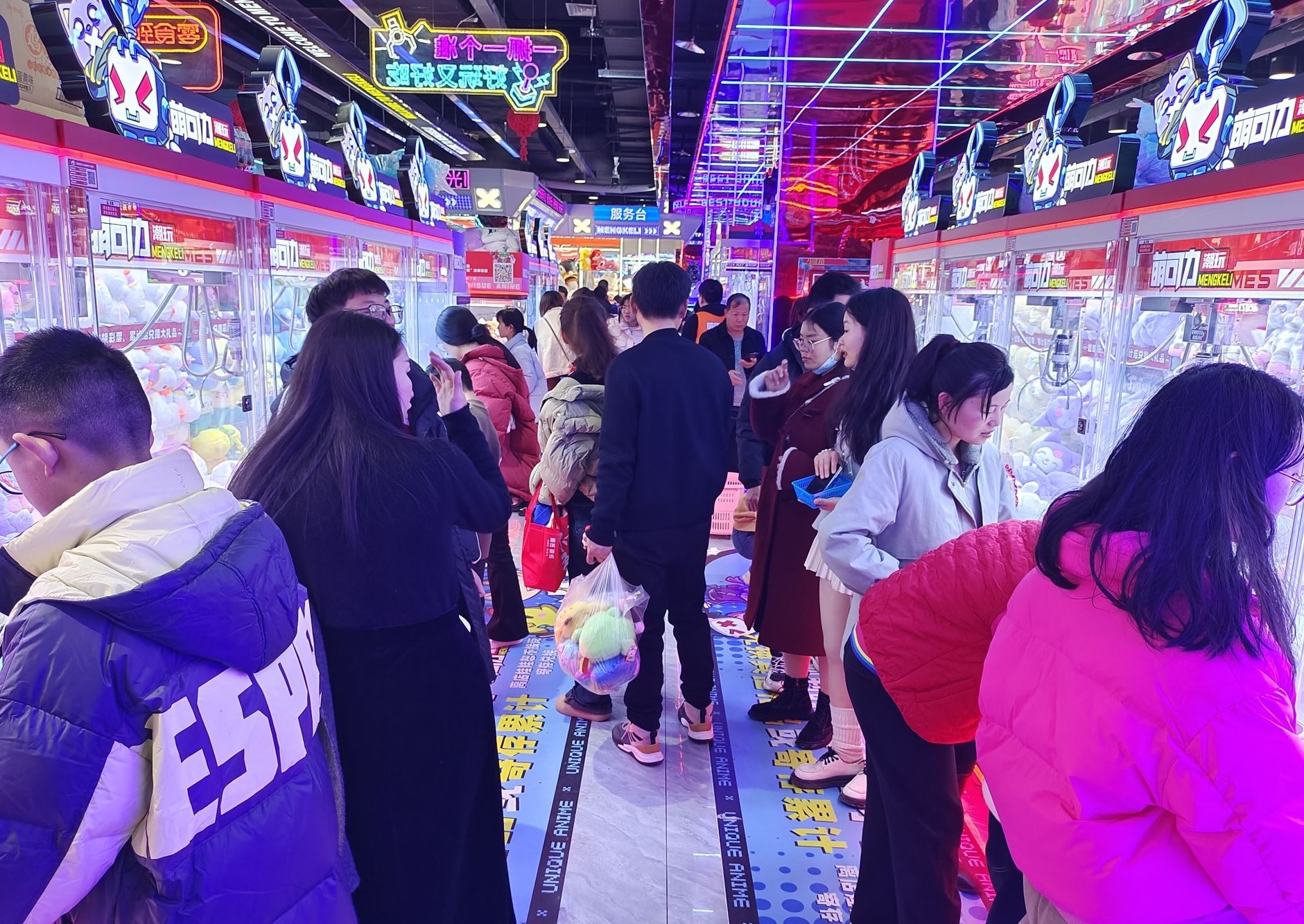 人气的集聚也带来了消费的火爆。记者在商场一家“抓娃娃”专营店看到,现场人气爆棚,进店的顾客来回徘徊跃跃欲试,孩子们手中拿着游戏币,提溜着各式各样抓到的玩偶。“本来带着父母和小孩来逛逛街,正好看到夹娃娃机半价销售,大家都想体验一下春节行大运的感觉,就买了100元的。”市民刘阳表示。