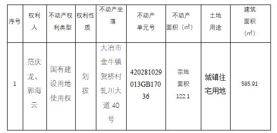 异议书面材料送达地址:大冶市长乐大道大冶市政务服务中心大楼二层市不动产登记中心
