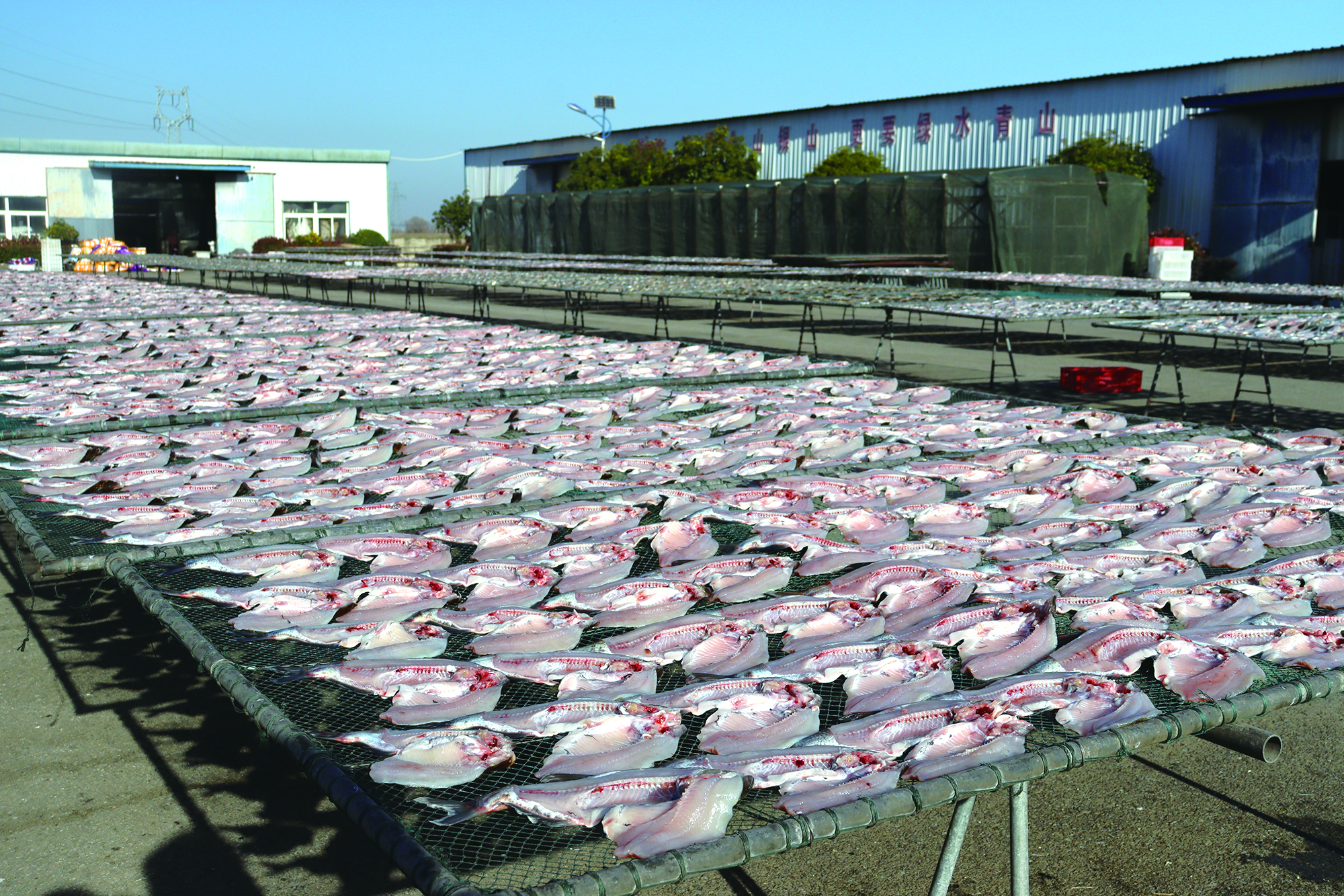 三山湖水碧波万顷,北风吹来,这里便成了天然的晾晒场。007县道和东铁公路等在此交会,国启地理位置优越。“武阳高速还地桥出口下来就是我们公司,从武汉过来这里40分钟就到了,这为我们产品的销路提供了更多便利。”国启负责人祝庆说,风干鱼的销售迎来了旺季,为了满足市场需求,国启提前做好了充足的准备,不仅增加了生产线和人员配备,还通过线上线下相结合的方式,拓宽了销售渠道,让更多消费者更轻松买到这一过年送礼佳品。