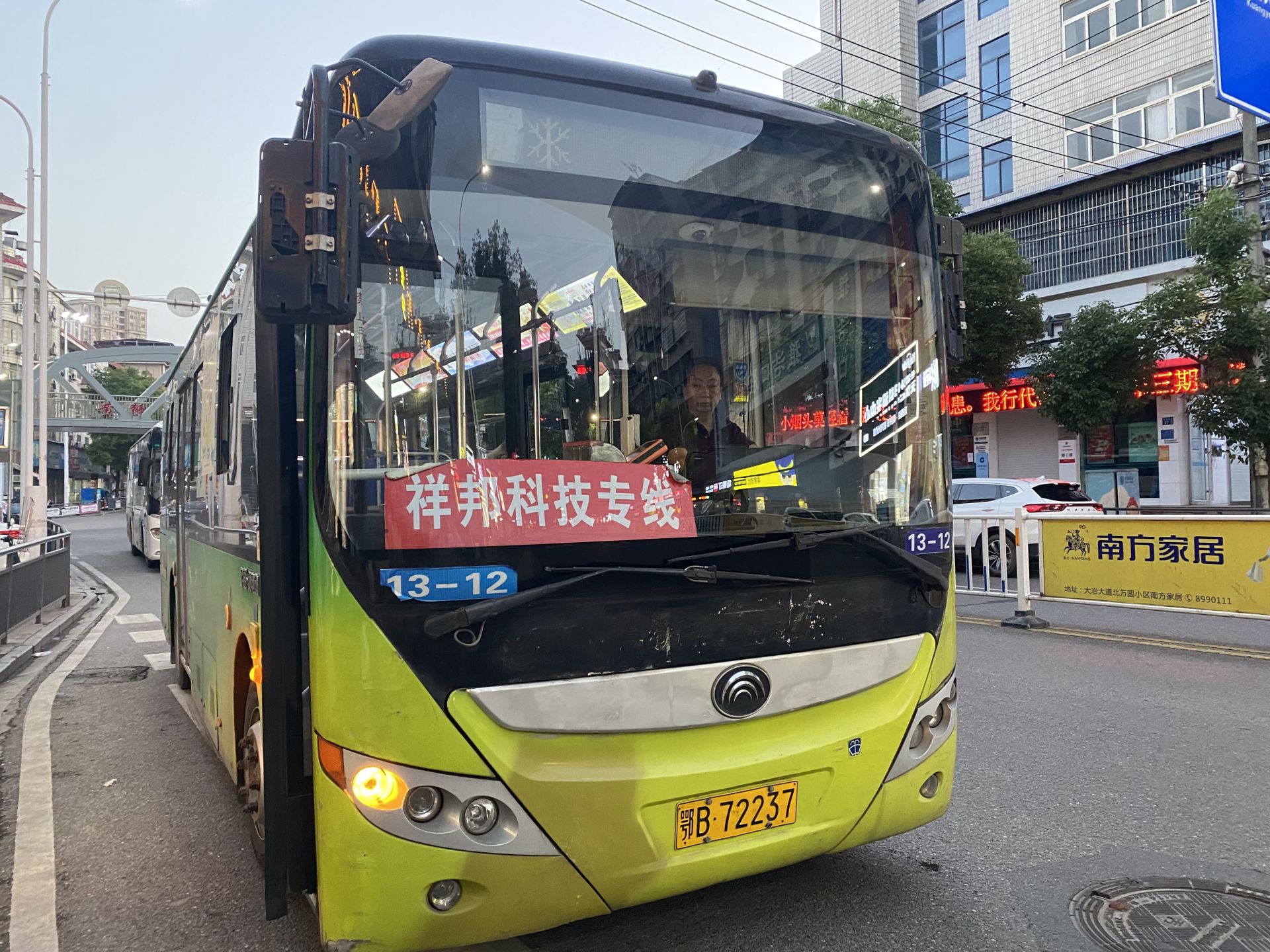 5月9日晚上19点,一辆定制公交从碧桂园公交站驶出,车头上“祥邦科技”的标识格外显眼。“准时发车,只能提前不能误点,几十个工人等着上夜班呢!”公交车司机程华国说道。夜色中,车辆沿着既定路线前行,沿途经过大冶兵暴旧址、中商平价、会展中心等站点,不时有祥邦科技的员工上车。