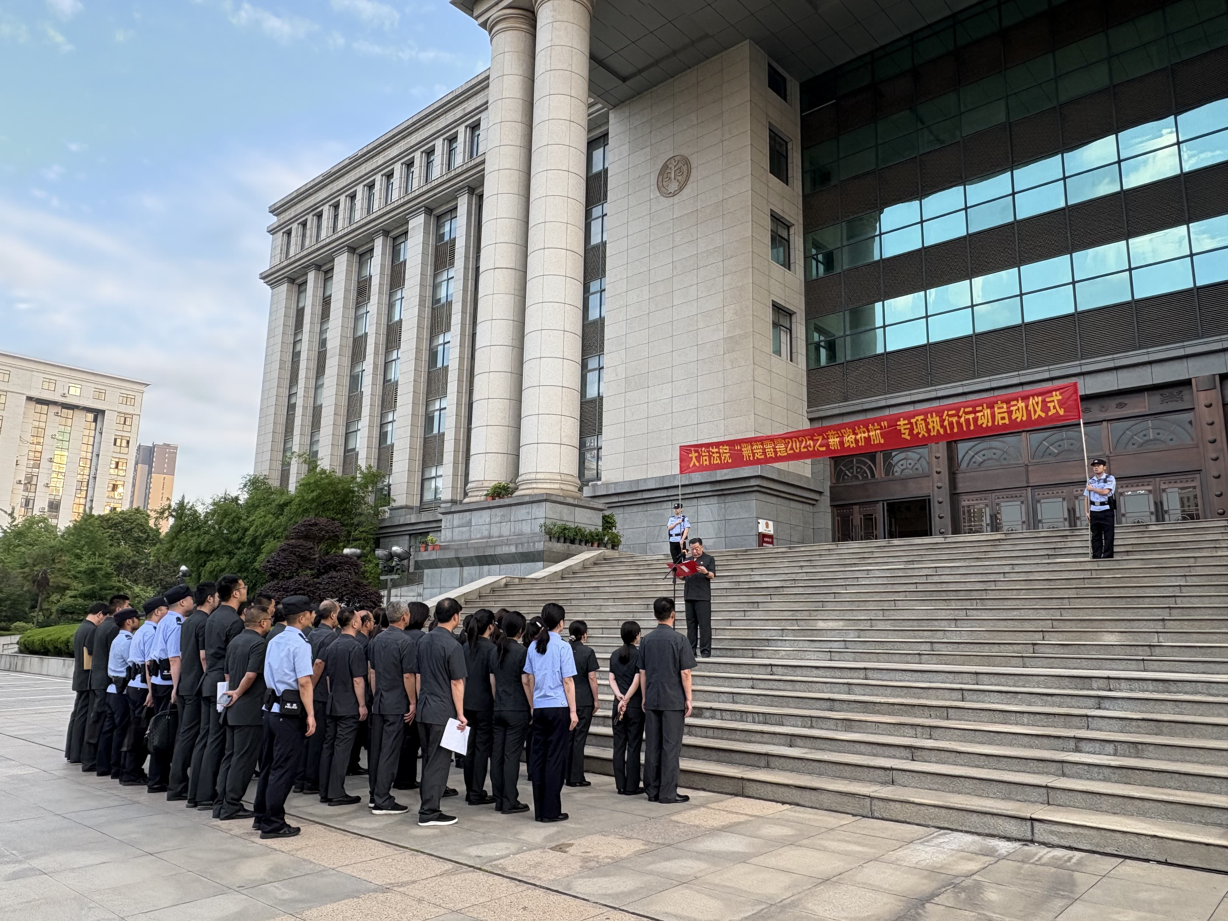 云上大冶报道(通讯员 杨思涵 记者 熊业欣)“出发!”近日清晨6点,市法院70余名执行干警集结完毕,天未破晓,警灯闪烁,随着一声号令,执行干警分为三路迅速出发前往各被执行人住所,“荆楚雷霆2025之‘薪’路护航”专项执行行动拉开帷幕。