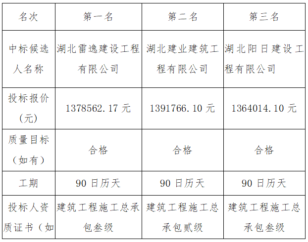 大冶市还地桥镇驾虹村综合服务中心建设项目于2025年5月14日在大冶市农村综合产权交易中心网上发布公告,2025年6月3日在大冶市农村综合产权交易中心二楼开标室开标,并于2025年6月3日完成评标工作。根据评标委员会提交的评标报告,大冶市还地桥镇驾虹村综合服务中心建设项目已经确认评标结果,现进行评标结果公示。