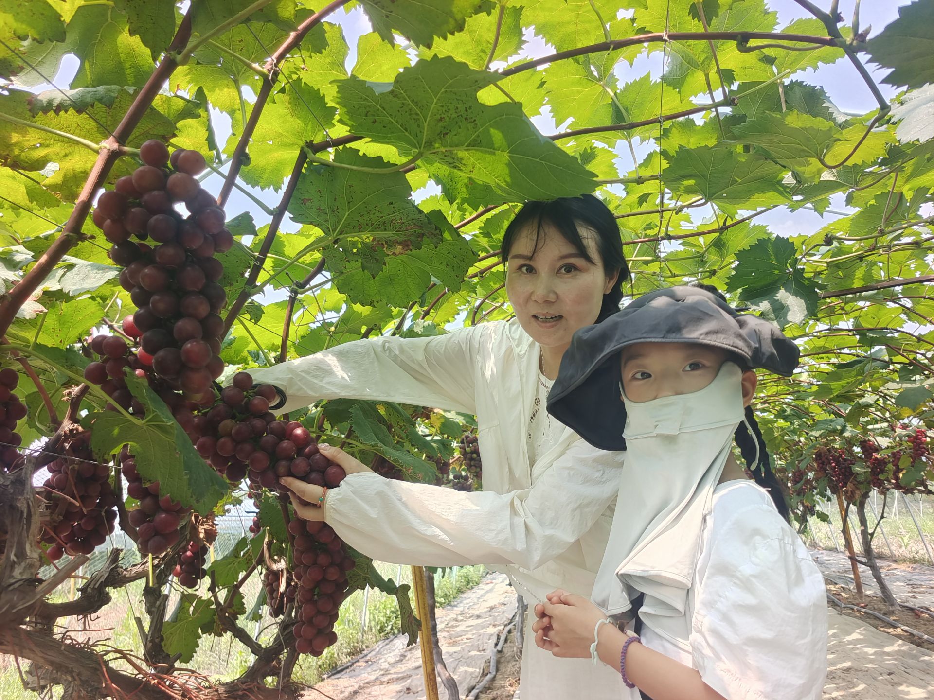 “葡萄甜,孩子爱来!”游客刘权笑着说,“每次成熟都带孩子来,亲近自然,品尝鲜果,大人孩子都开心。”