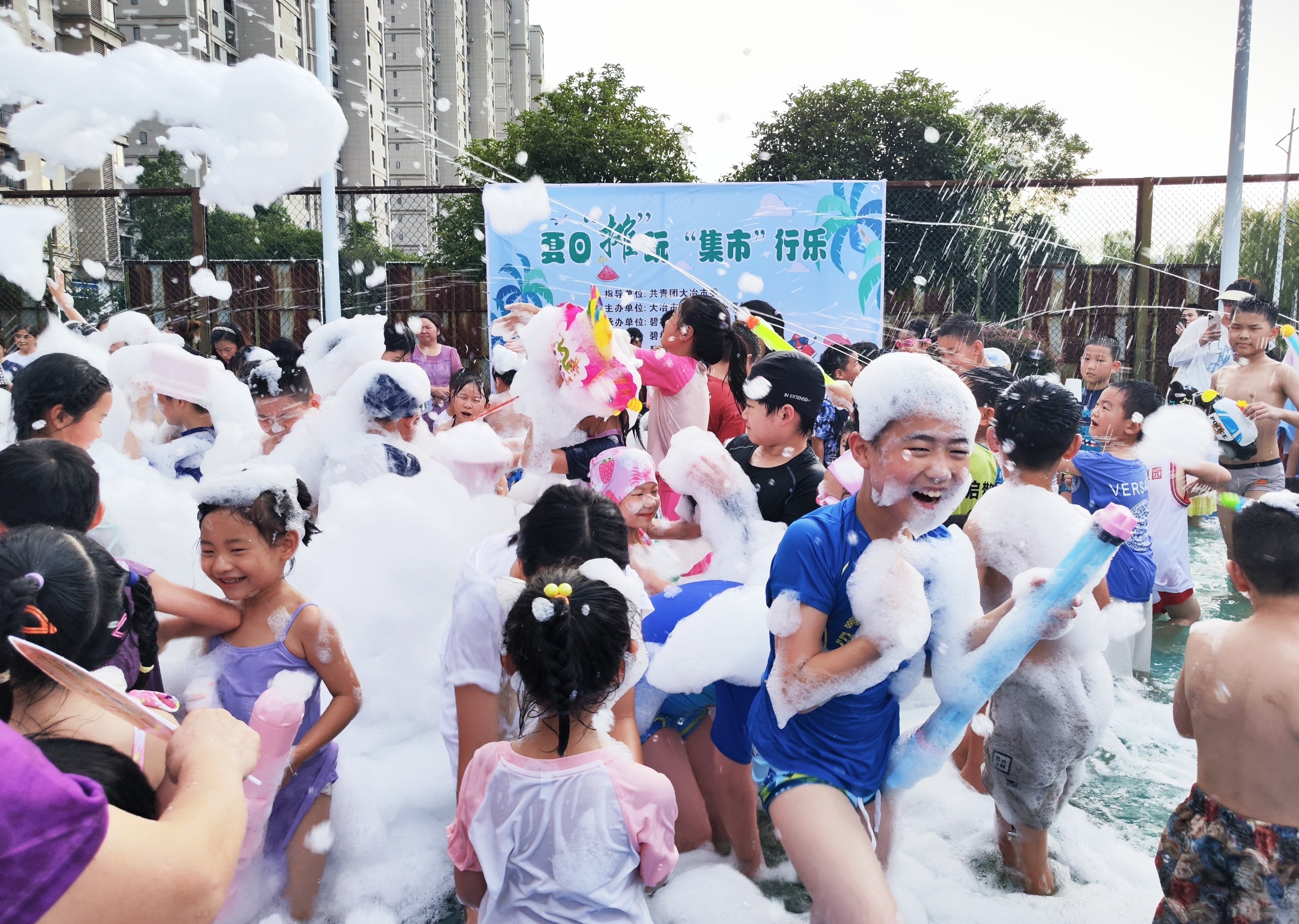在志愿者和安全看护人员的保障下,孩子兴奋地穿梭在泡泡池中,发出阵阵清脆悦耳的欢笑声。现场精心设计的泡泡追逐赛、玩具水枪大作战等互动游戏,让孩子们尽情释放天性,享受纯真童年的夏日乐趣。